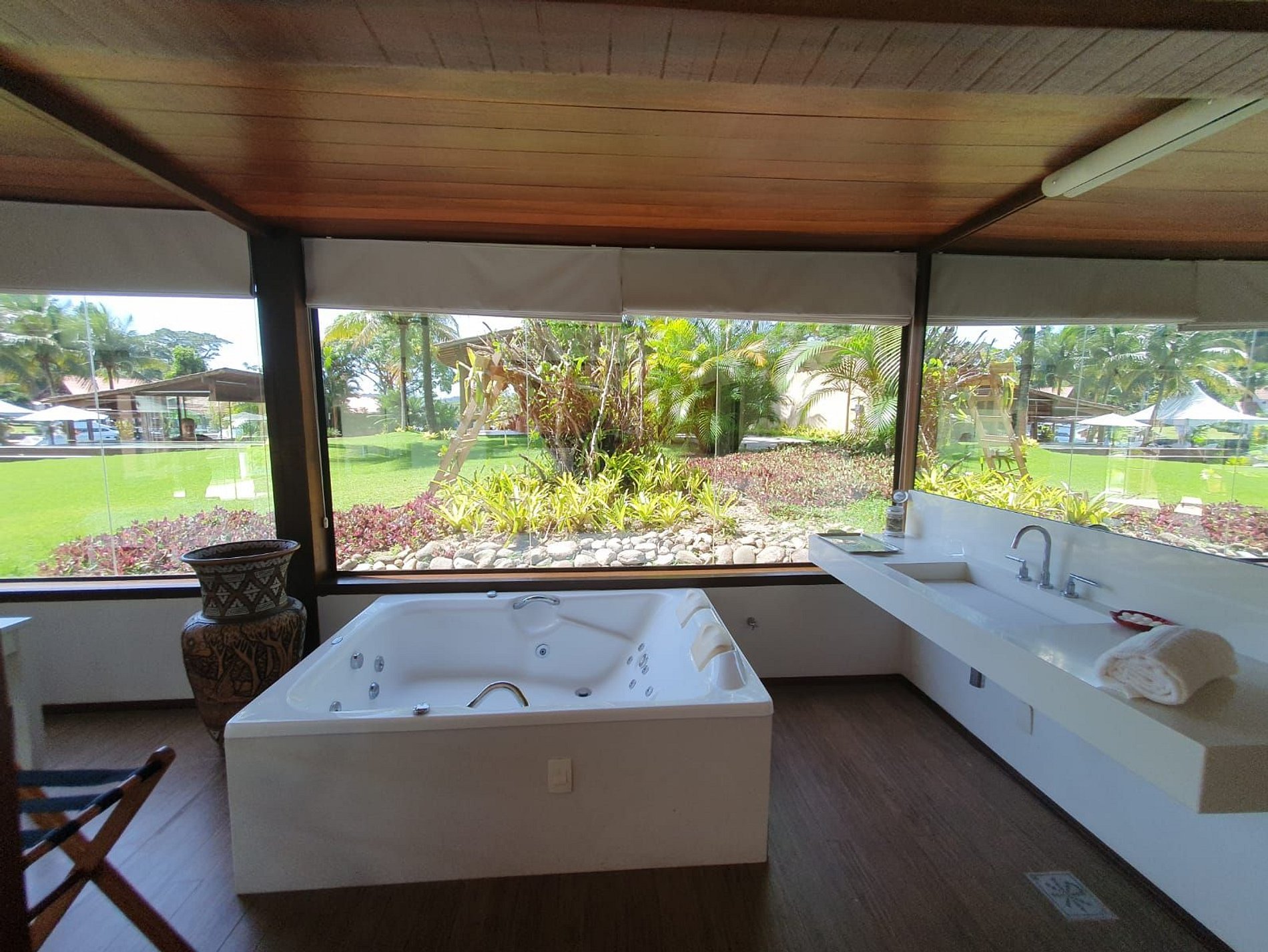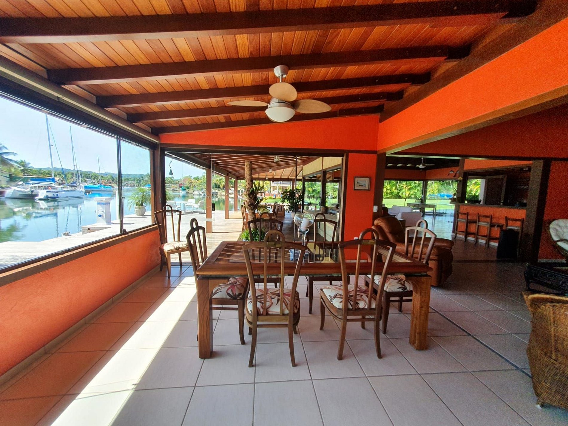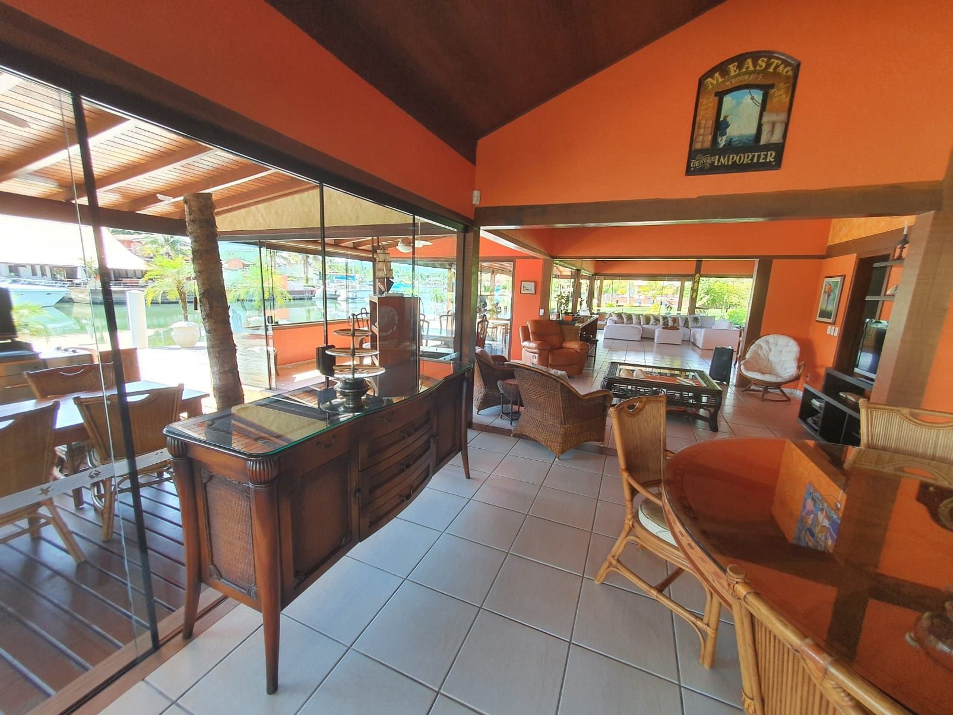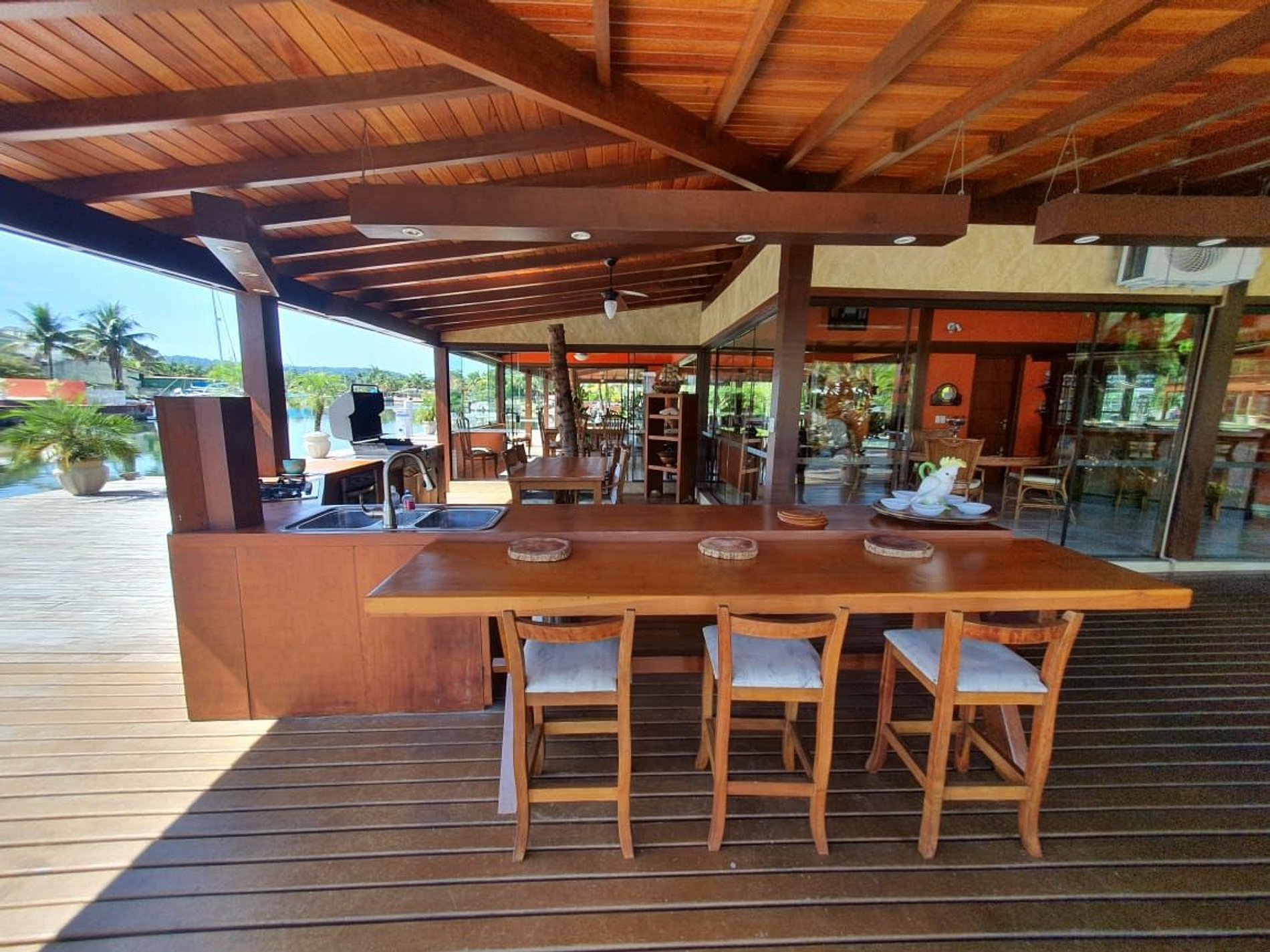 It has six double suites, three are with whirlpool, are completely separate from the social area and air conditioned. It also has a hall with a large living room and minibar at the entrance to the suites, an indoor living room with cable TV and air conditioning, two air-conditioned indoor dining rooms, a balcony with living and dining room, gourmet kitchen, a kitchen bar and a fully equipped kitchen, stainless steel gas barbecue – WEBER, swimming pool with waterfall, infinity edge for the canal and SPA pool and Ping Pong table.