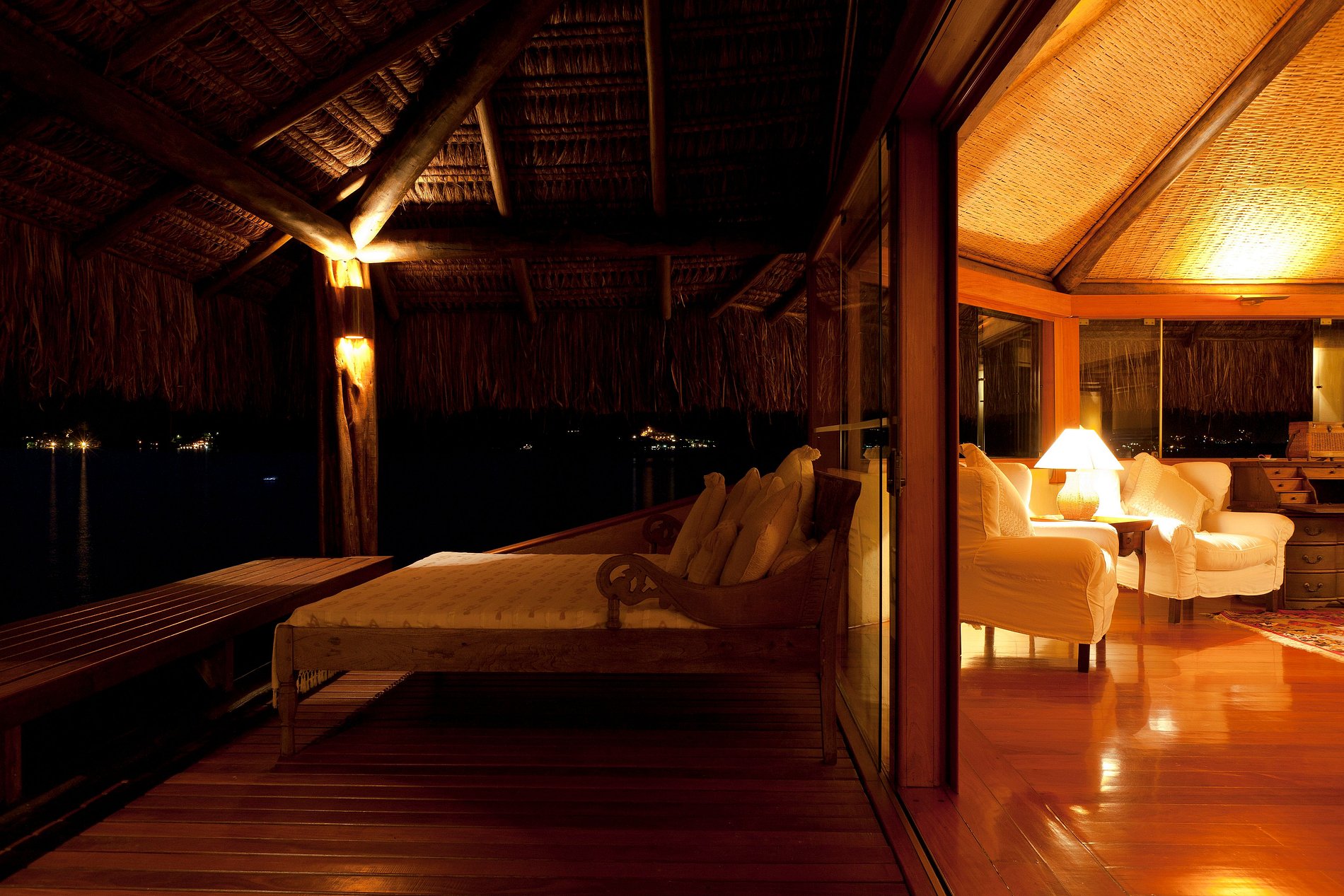 The Presidential bungalow offers two floors totally integrated and separated of the charming balconies by and big glass door that allows to appreciate a heavenly view without leaving the bed.