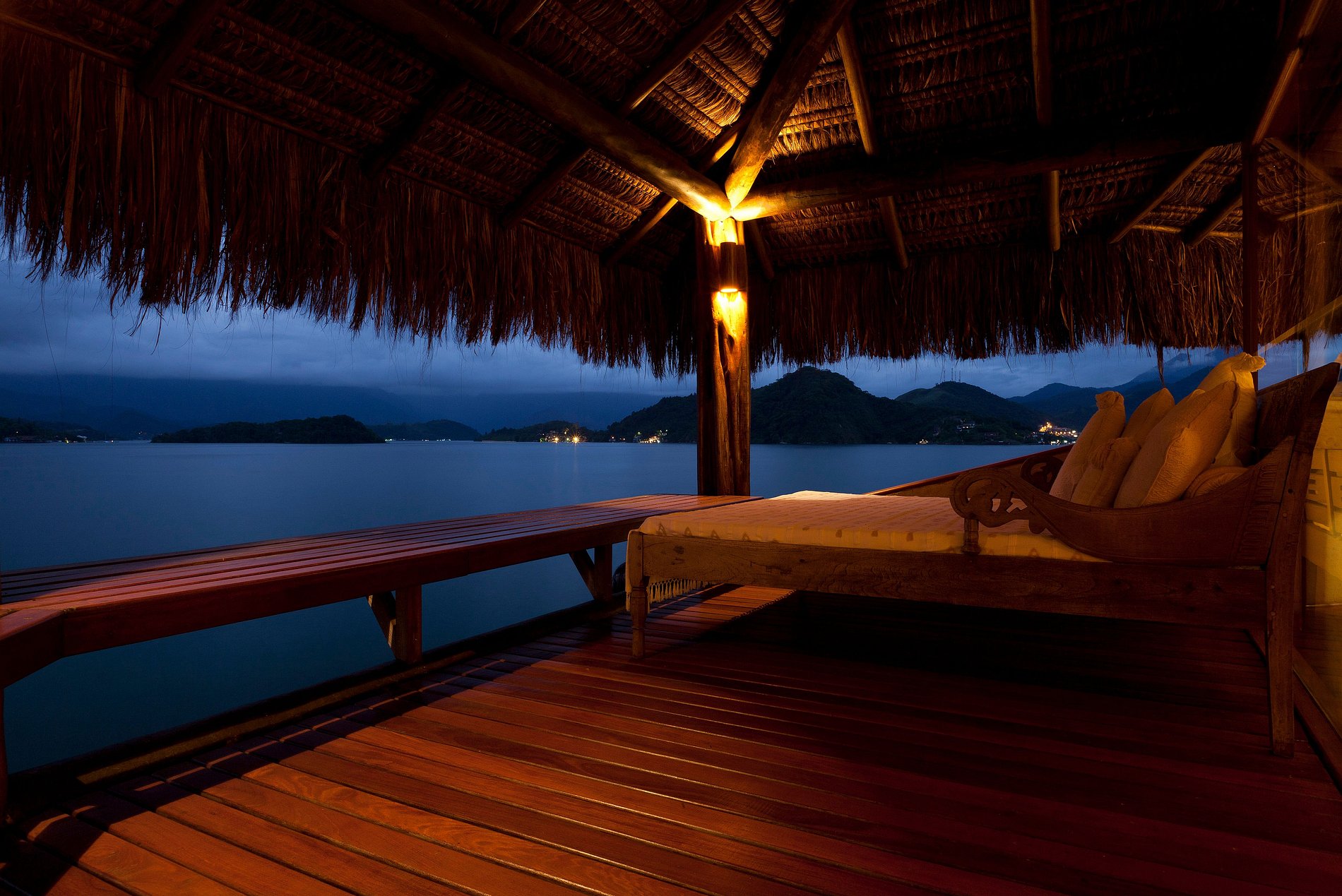 There are, in all, 3 bungalows, while 2 of them have two suites each, leisure pavilion, heliport and a Cooper track all over the Island. Everything built and organized carefully, having in mind all comfort and privacy, offering our costumers the opportunity to try the extraordinary.