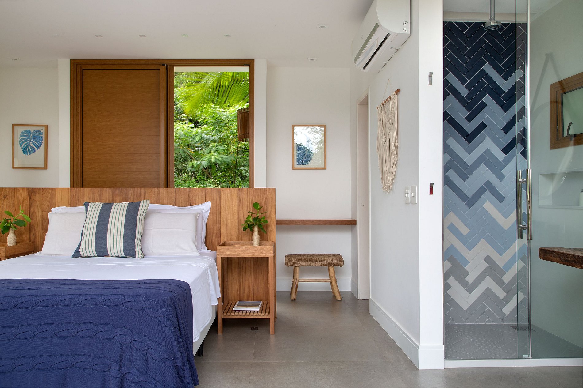It also has excellent leisure facilities: a small beach, heated infinity pool, sauna, tree house for children, movie theater with 120-inch screen, sound system, gourmet area complete with barbecue, wood oven and ice machine. It also has a beach tennis court, futmesa, kayaks, SUPs and buoys for skiing.