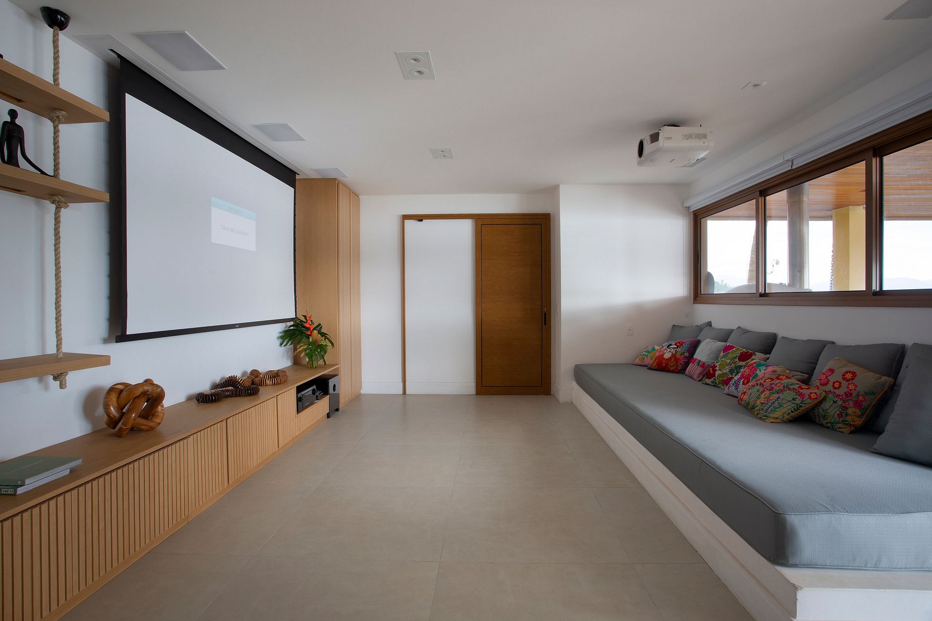It also has excellent leisure facilities: a small beach, heated infinity pool, sauna, tree house for children, movie theater with 120-inch screen, sound system, gourmet area complete with barbecue, wood oven and ice machine. It also has a beach tennis court, futmesa, kayaks, SUPs and buoys for skiing.