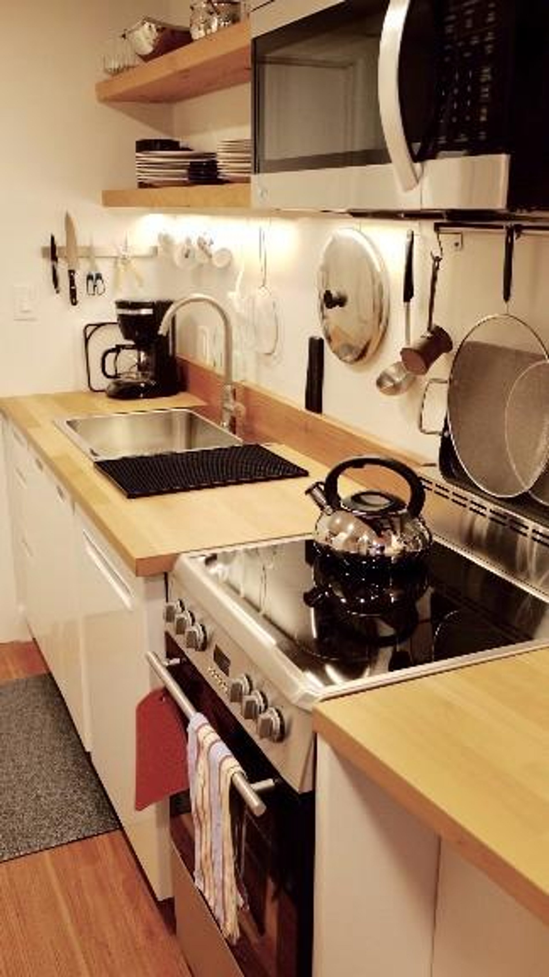 The downstairs features two bedrooms. The first, just off the living room contains a luxurious queen size bed, pull out desk, plenty of closet space and an ensuite bathroom. The second downstairs bedroom - just off the dining room - features a large comfortable king size bed, Herman Miller dressers with writing desk and a walk in closet. This bedroom has access to a bath with a soaking tub. Finishing off the downstairs is a cosy study; the perfect place to stretch out and unwind on the full-size sofa with a good book.