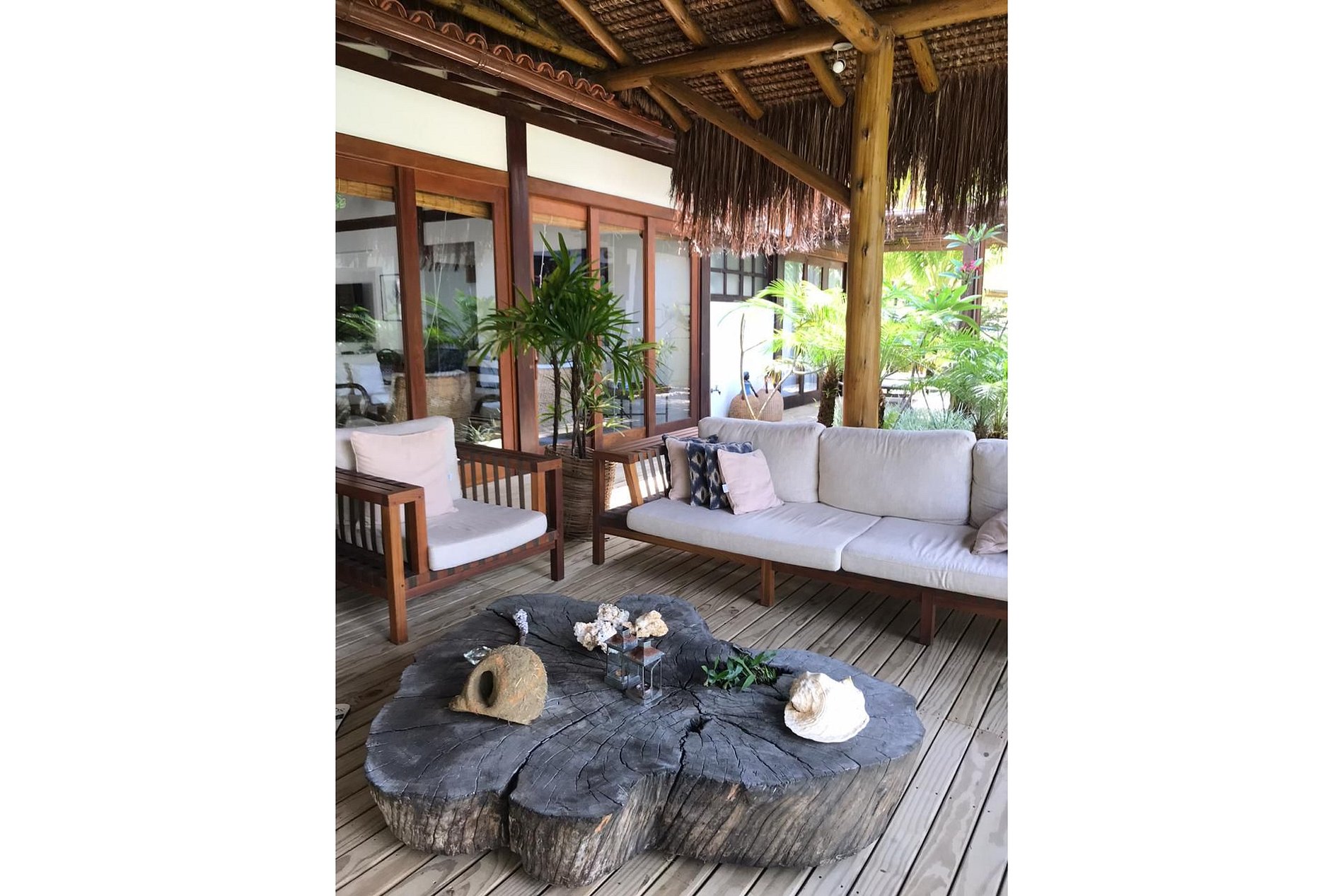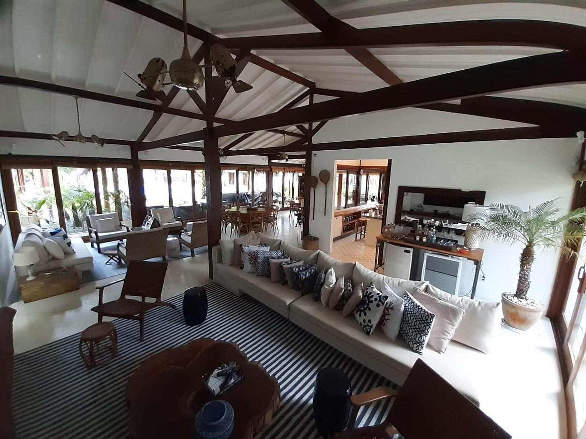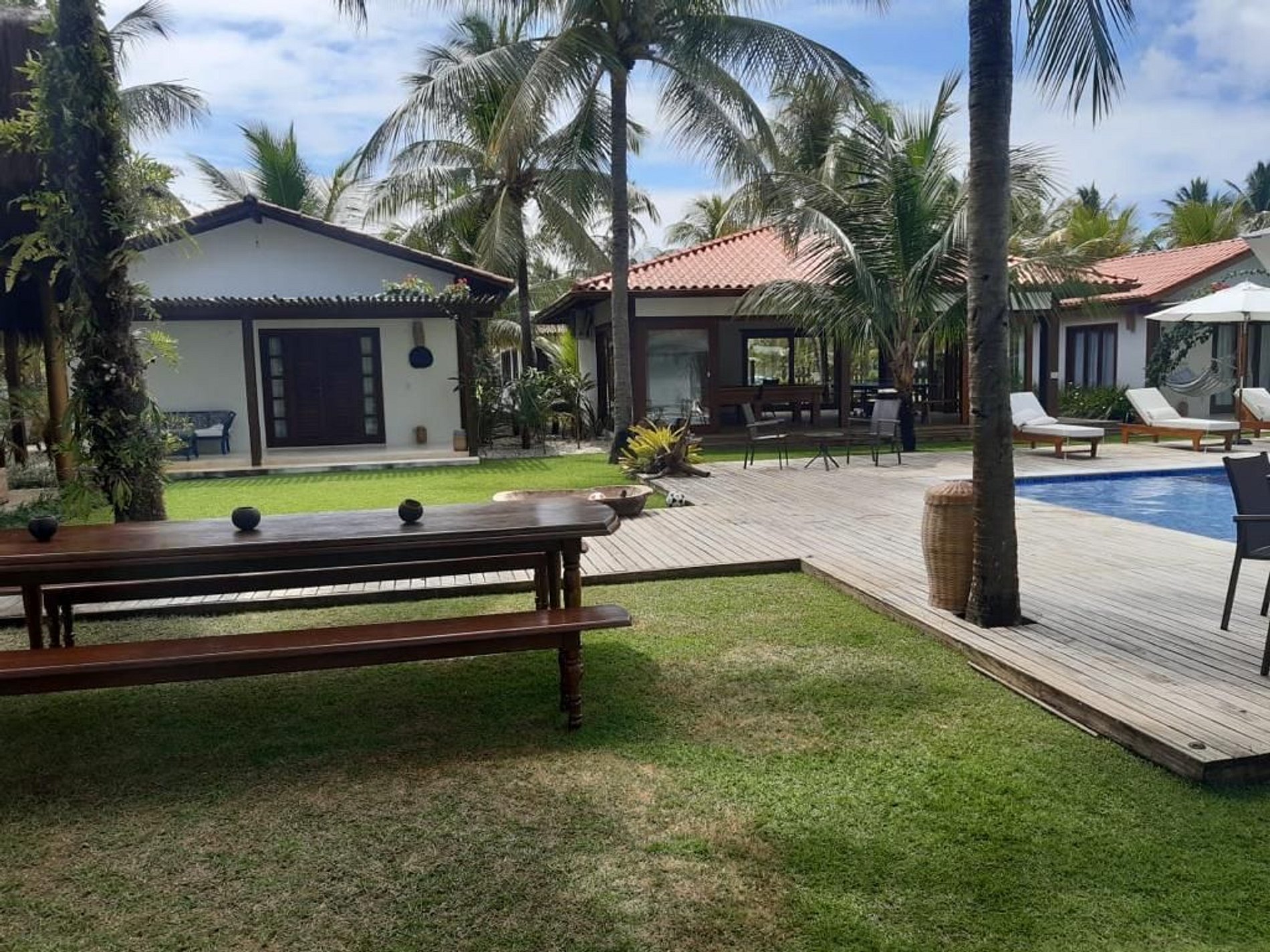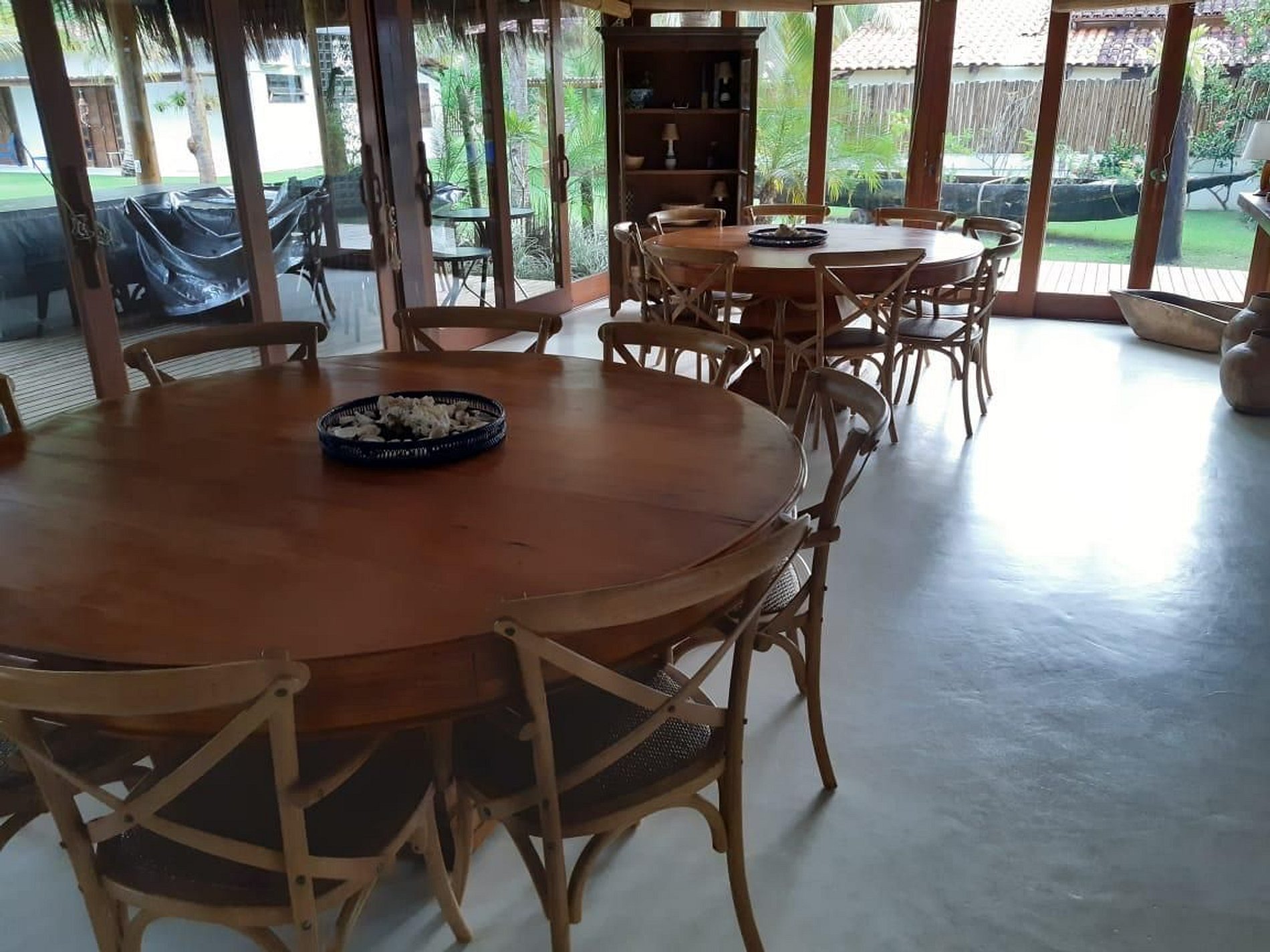Na casa principal está localizada a melhor das suítes, com chuveiro integrado a um jardim de inverno, duas salas de estar, cozinha, mesas para refeições e uma excelente varanda.
