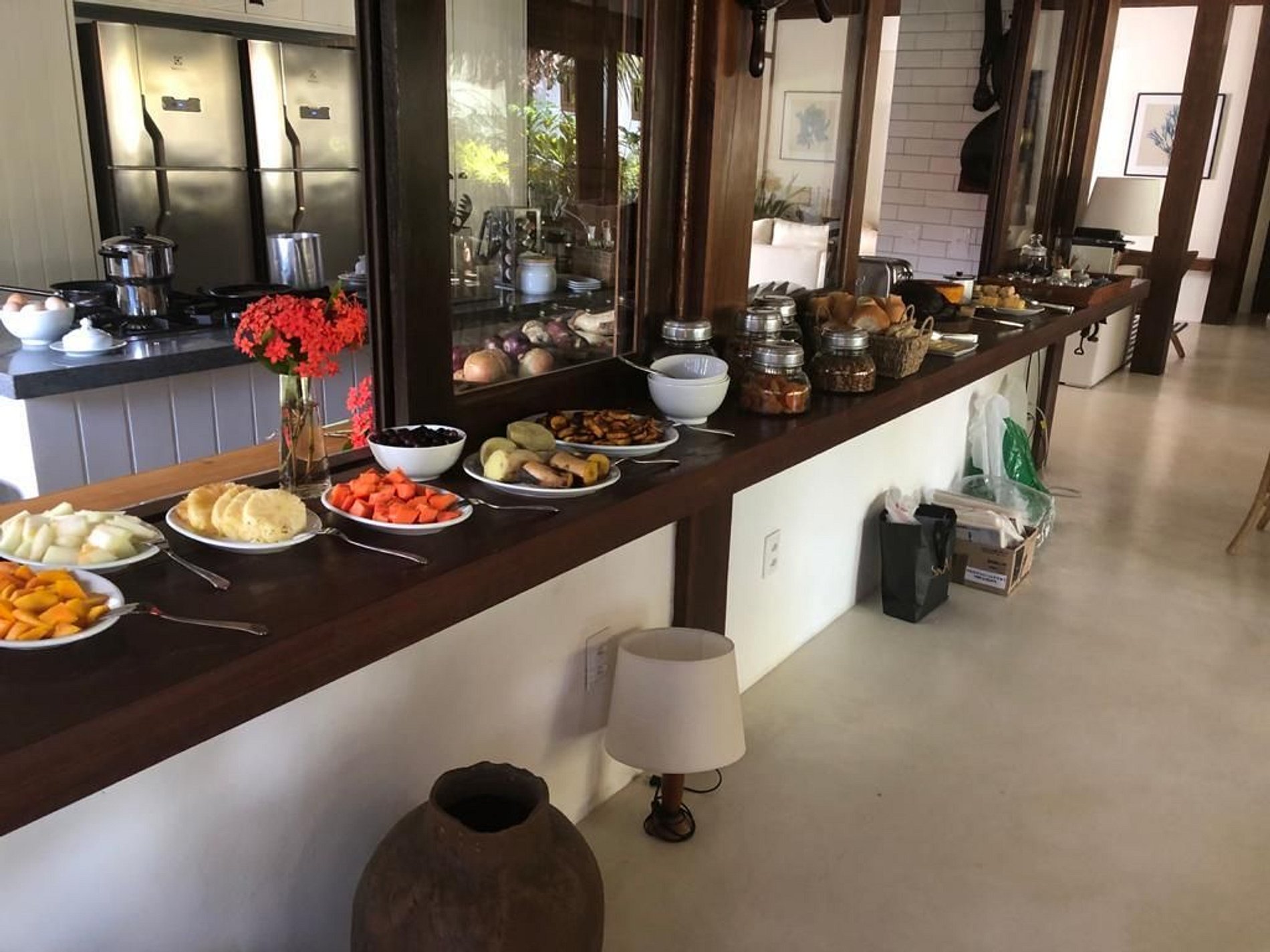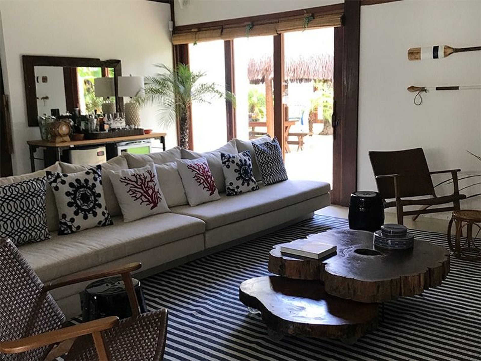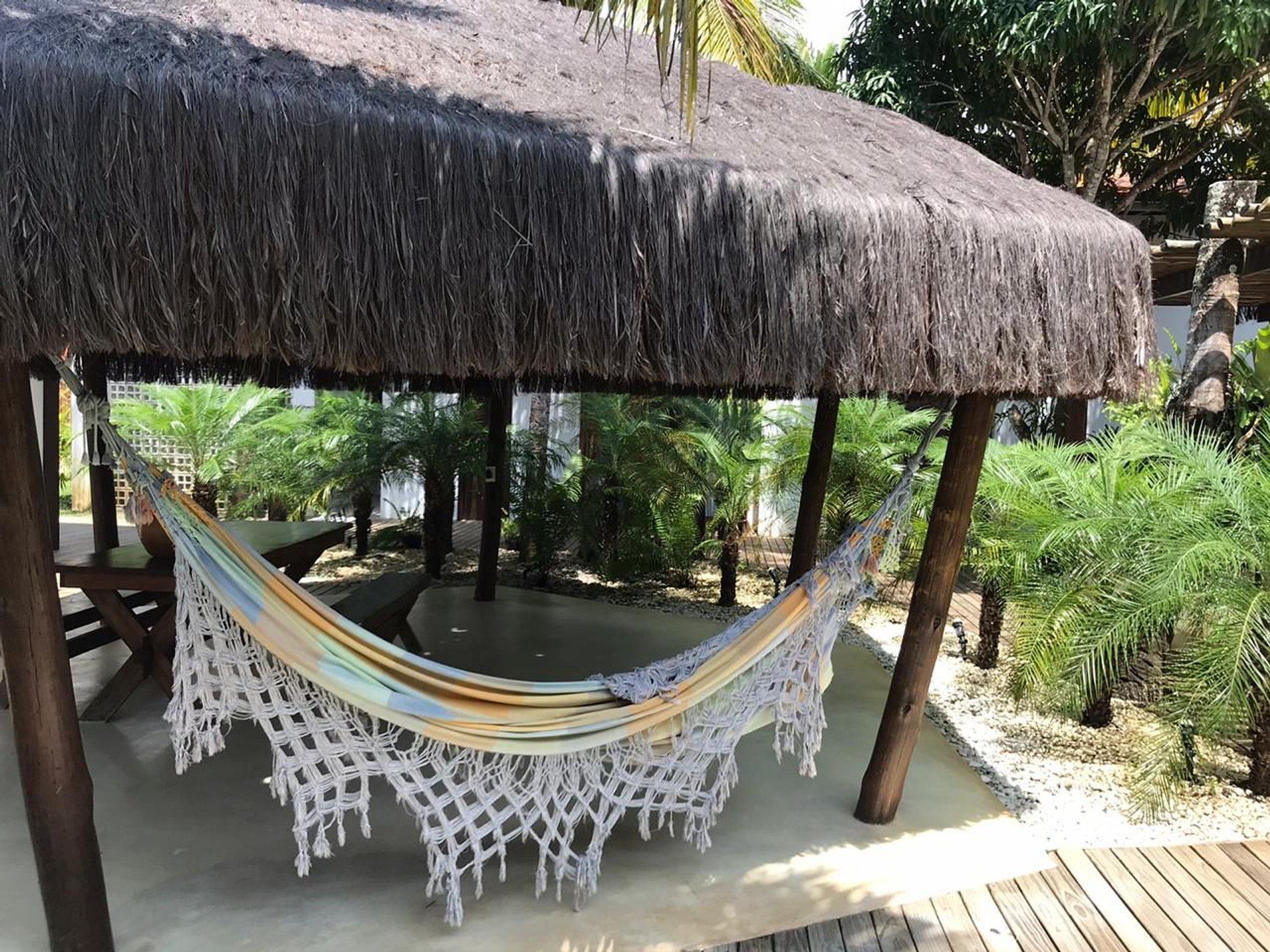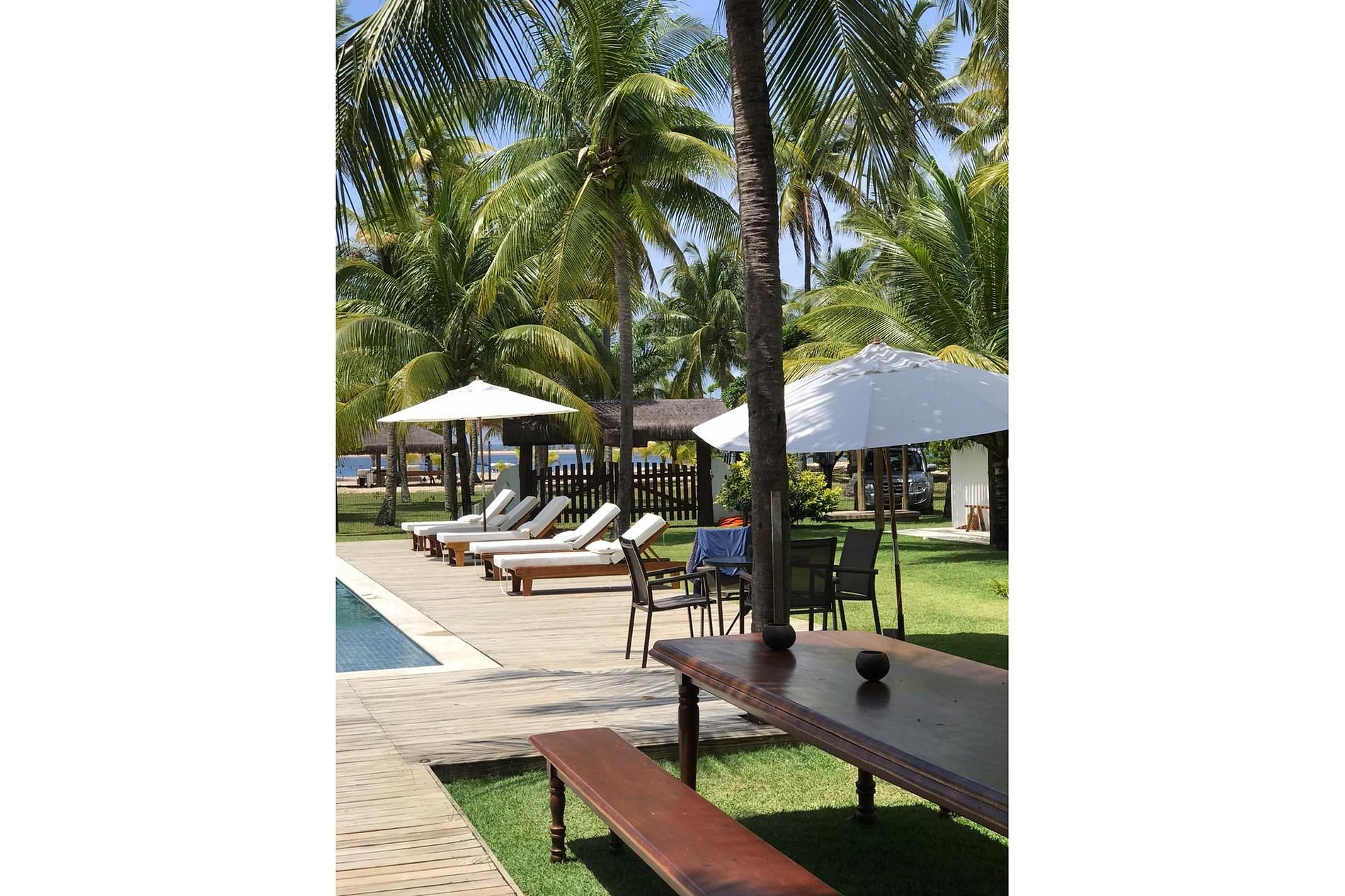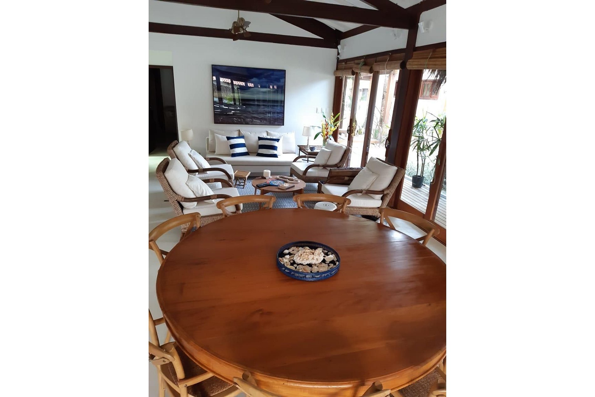 Na casa principal está localizada a melhor das suítes, com chuveiro integrado a um jardim de inverno, duas salas de estar, cozinha, mesas para refeições e uma excelente varanda.