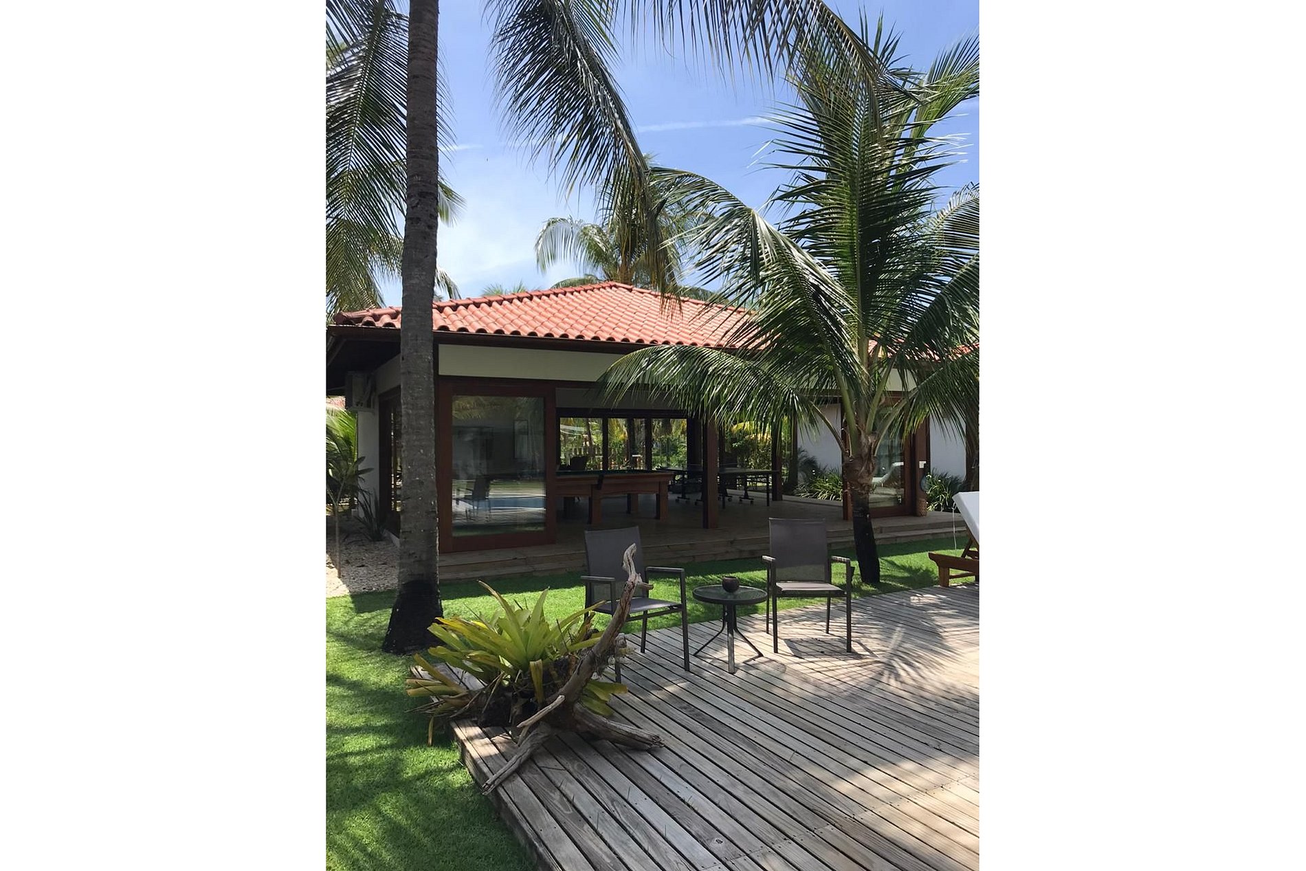 Na casa principal está localizada a melhor das suítes, com chuveiro integrado a um jardim de inverno, duas salas de estar, cozinha, mesas para refeições e uma excelente varanda.