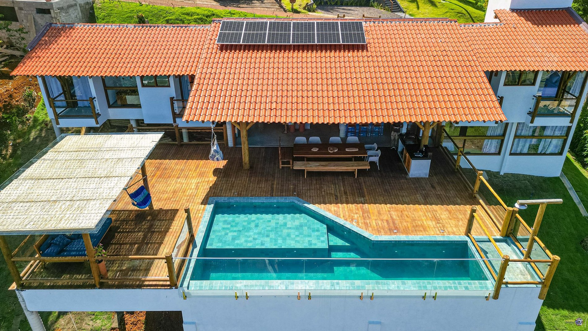In the outdoor area, a beautiful infinity pool and a deck on which the leisure area of the house is located, equipped with a double Uruguayan/Argentine grill, large table, large shower and a pergola with perfect upholstery to enjoy the best view of the region.