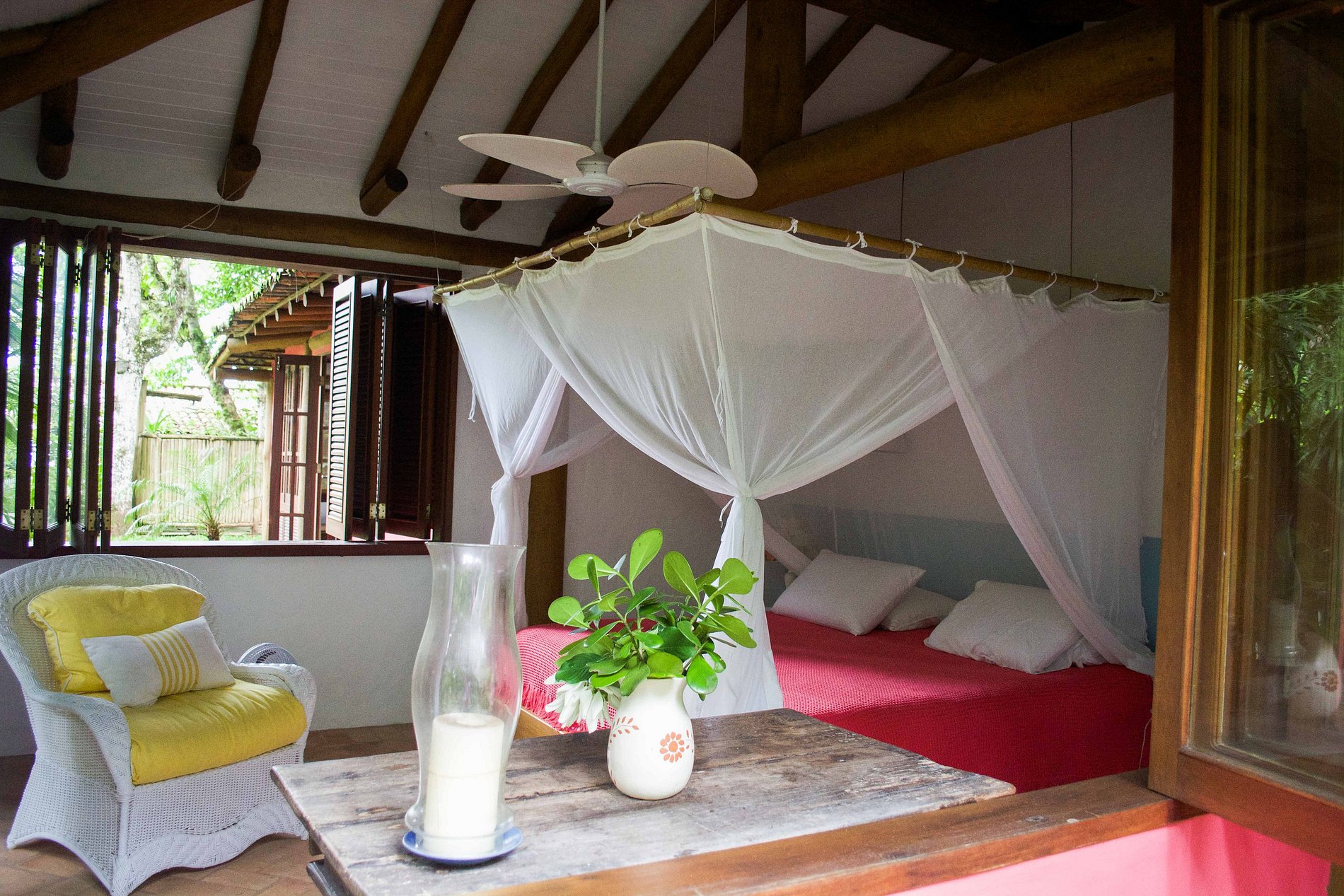 Located on Praia do Bonete in Ubatuba, São Paulo and surrounded by the Atlantic Forest, this charming and cozy house on the beach has a living room, kitchen and integrated terrace, TV with SKY and Balinese-style ceiling fans. All facing the beach! The 02 suites are in a separate building from the living area, which guarantees complete privacy. The garden offers a table, barbecue and delicious shower.