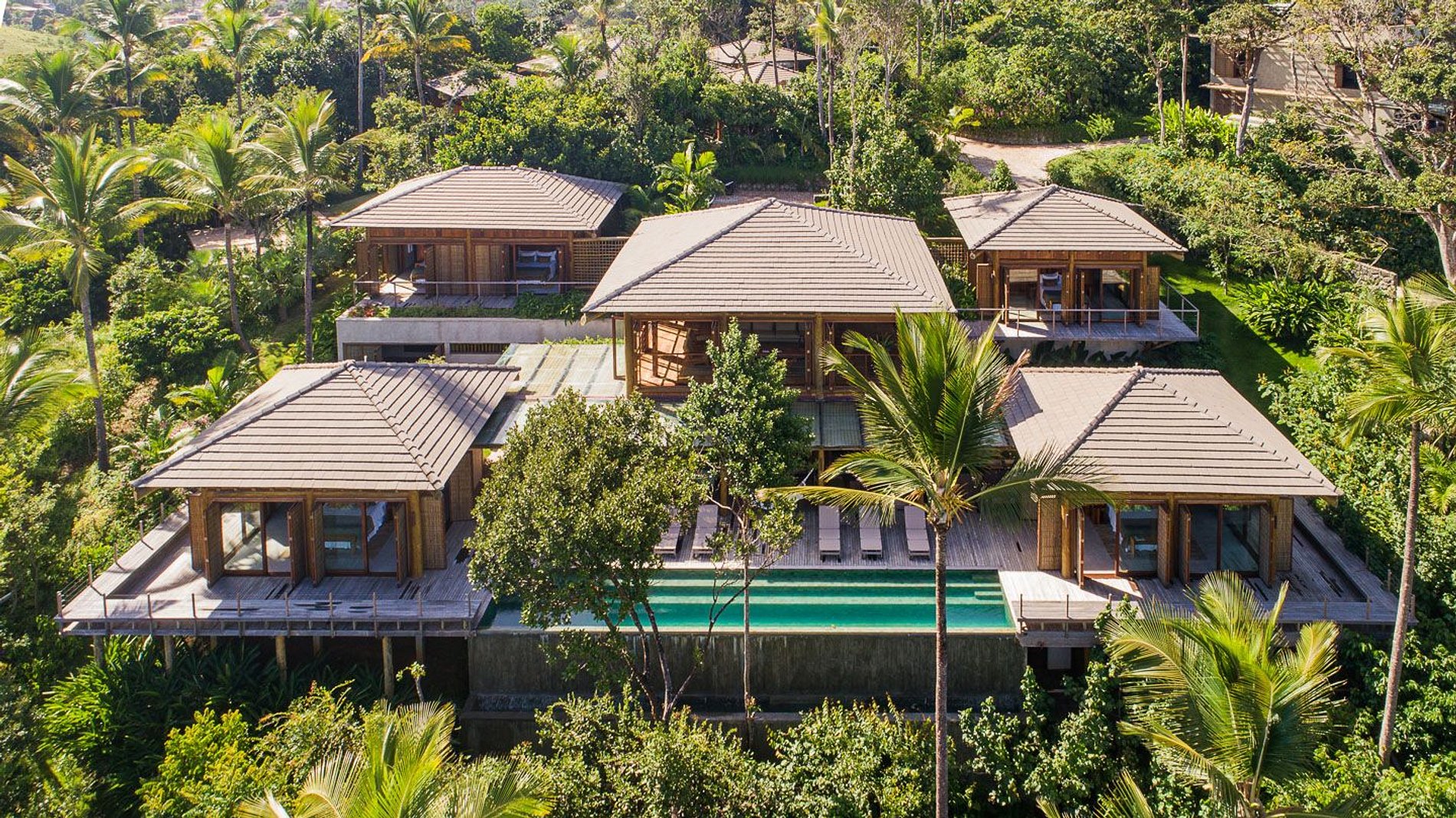 Located in front of the sea, next to the beaches of the city of Itacaré. It has 6 suites, a social area in the central bungalow, a gourmet area under a pergola, a balcony, a private pool and the suites interconnected by decks.