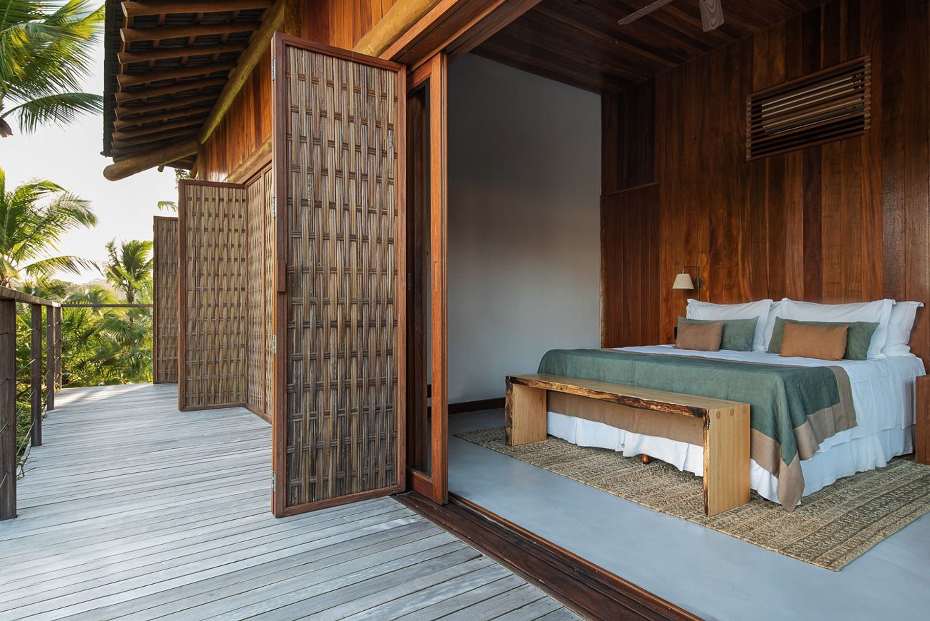 Located in front of the sea, next to the beaches of the city of Itacaré. It has 6 suites, a social area in the central bungalow, a gourmet area under a pergola, a balcony, a private pool and the suites interconnected by decks.