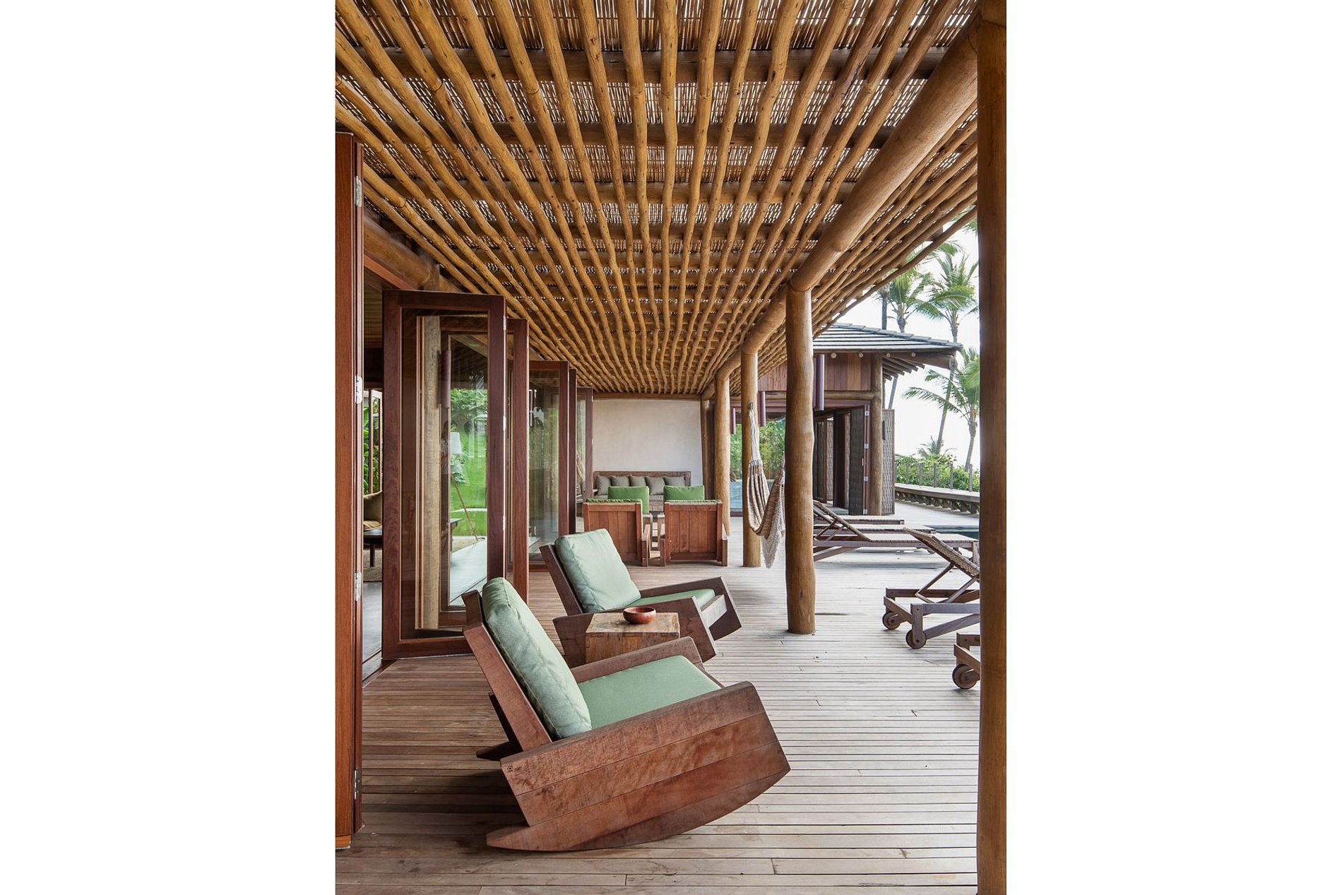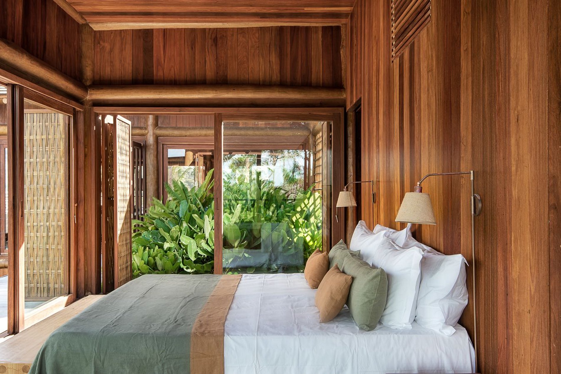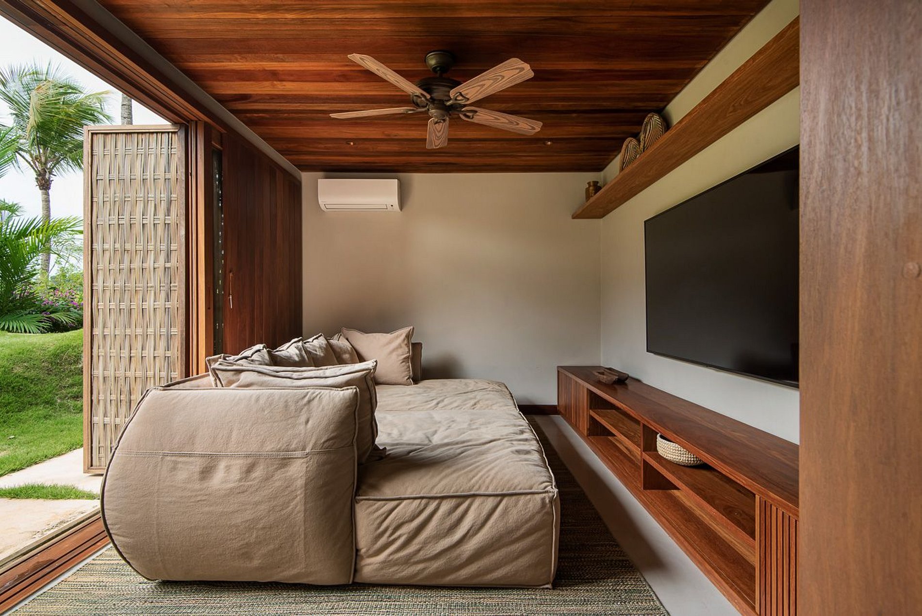 Located in front of the sea, next to the beaches of the city of Itacaré. It has 6 suites, a social area in the central bungalow, a gourmet area under a pergola, a balcony, a private pool and the suites interconnected by decks.