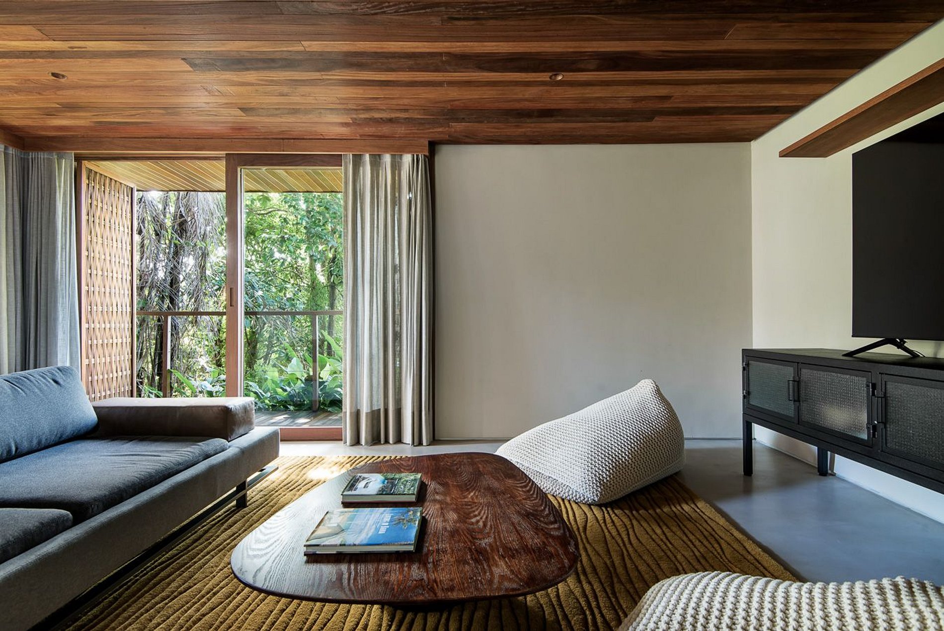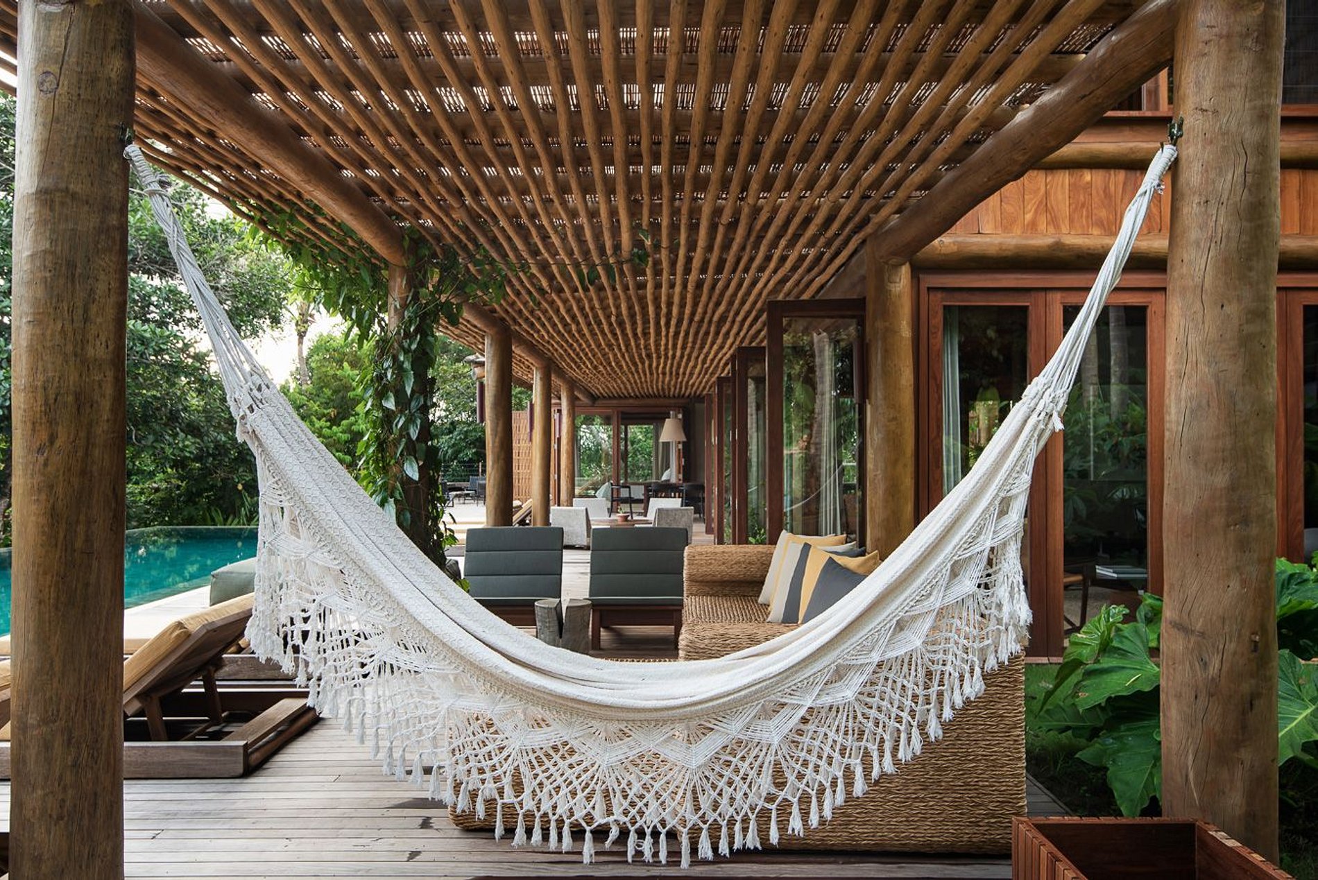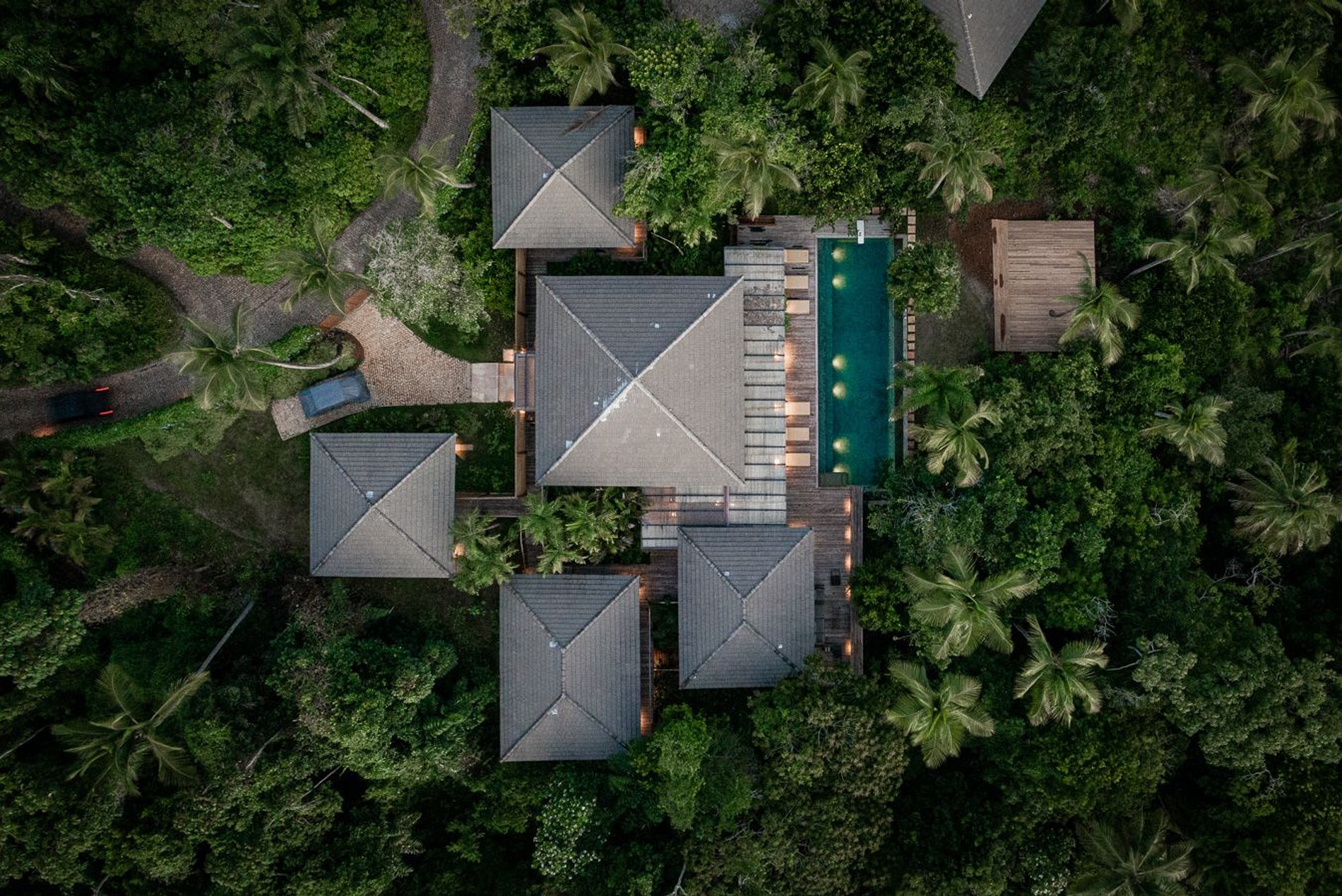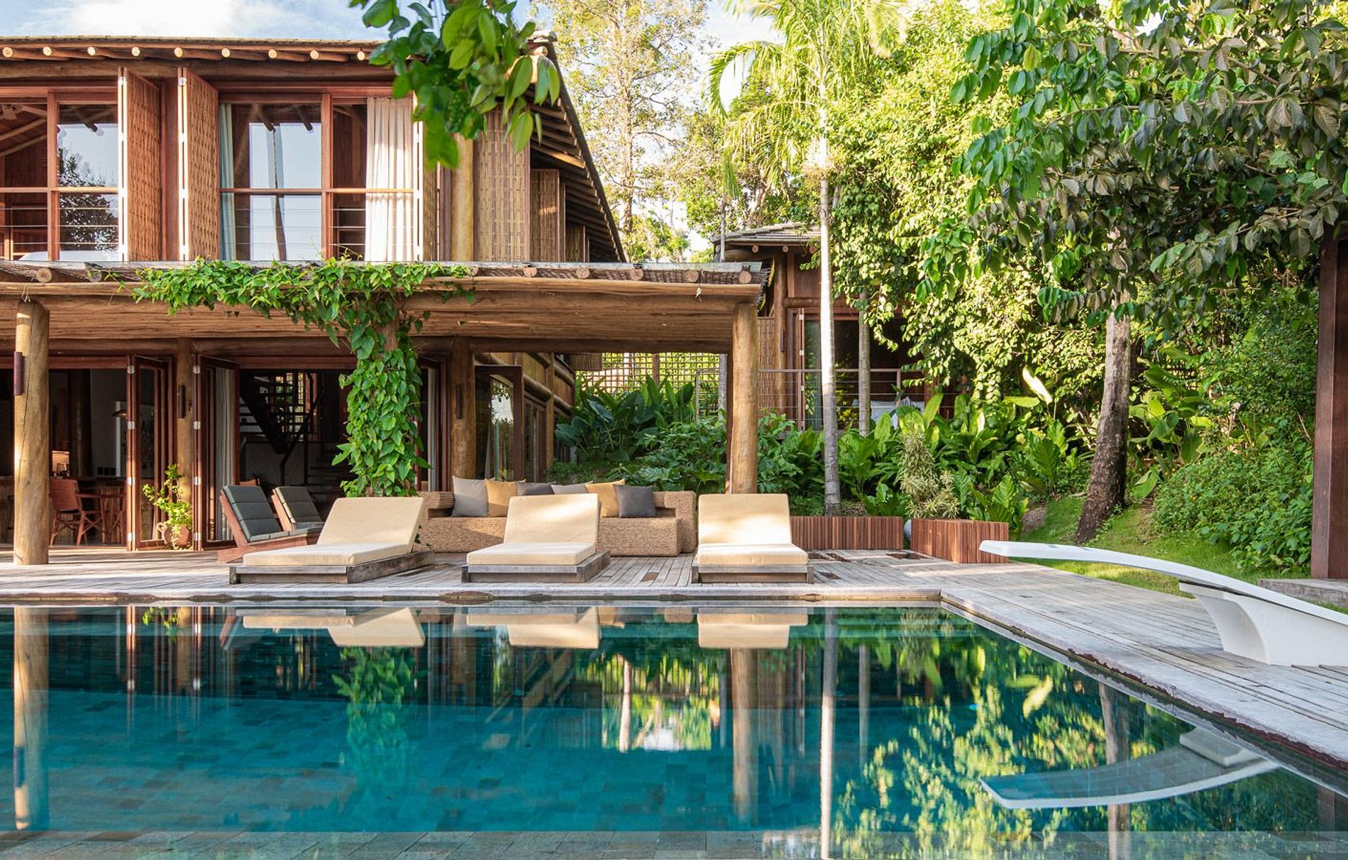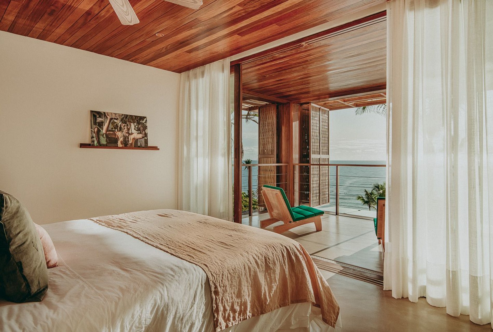 Located in front of the sea, next to the beaches of the city of Itacaré. It has 6 suites, a social area in the central bungalow, a gourmet area under a pergola, a balcony, a private pool and the suites interconnected by decks.