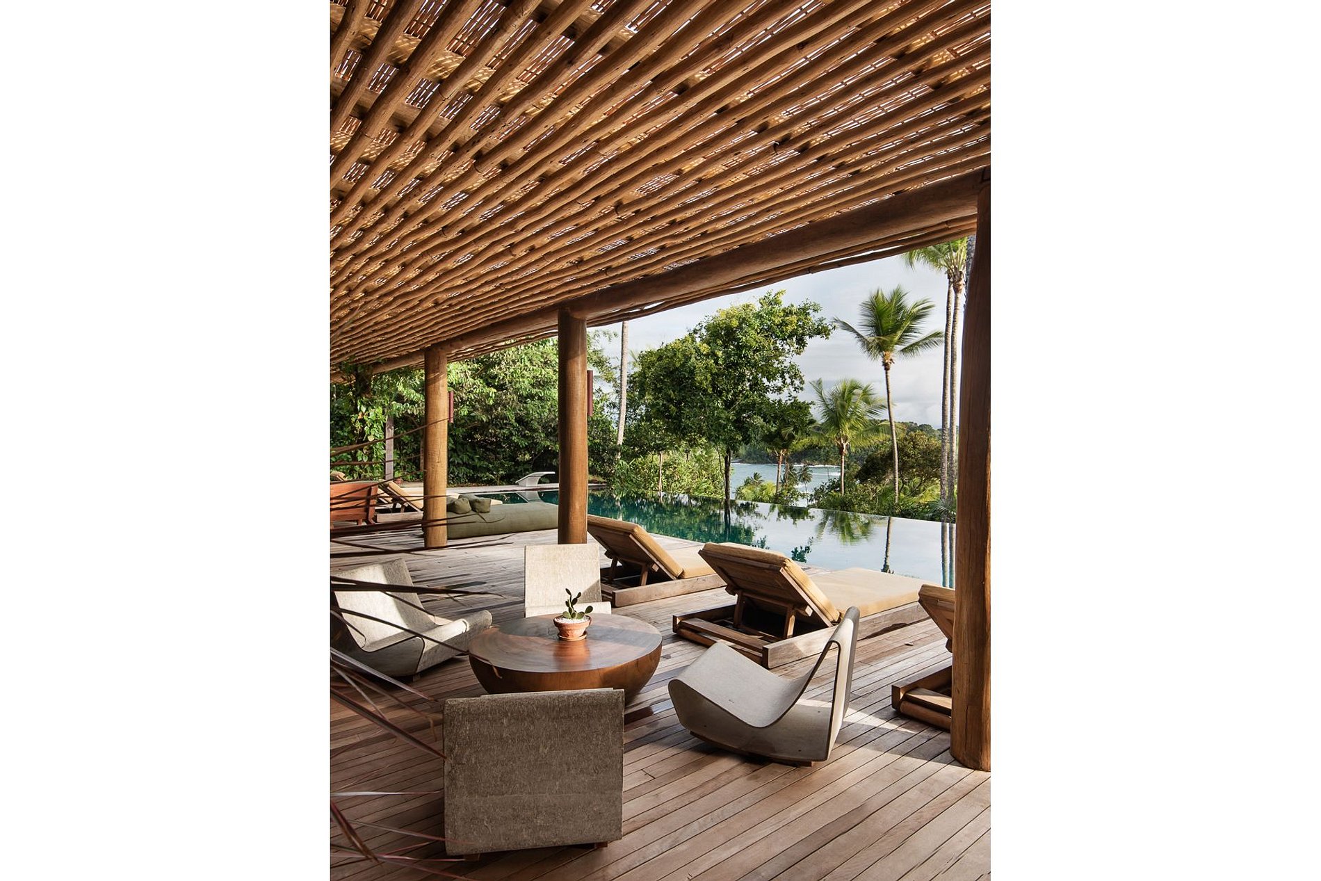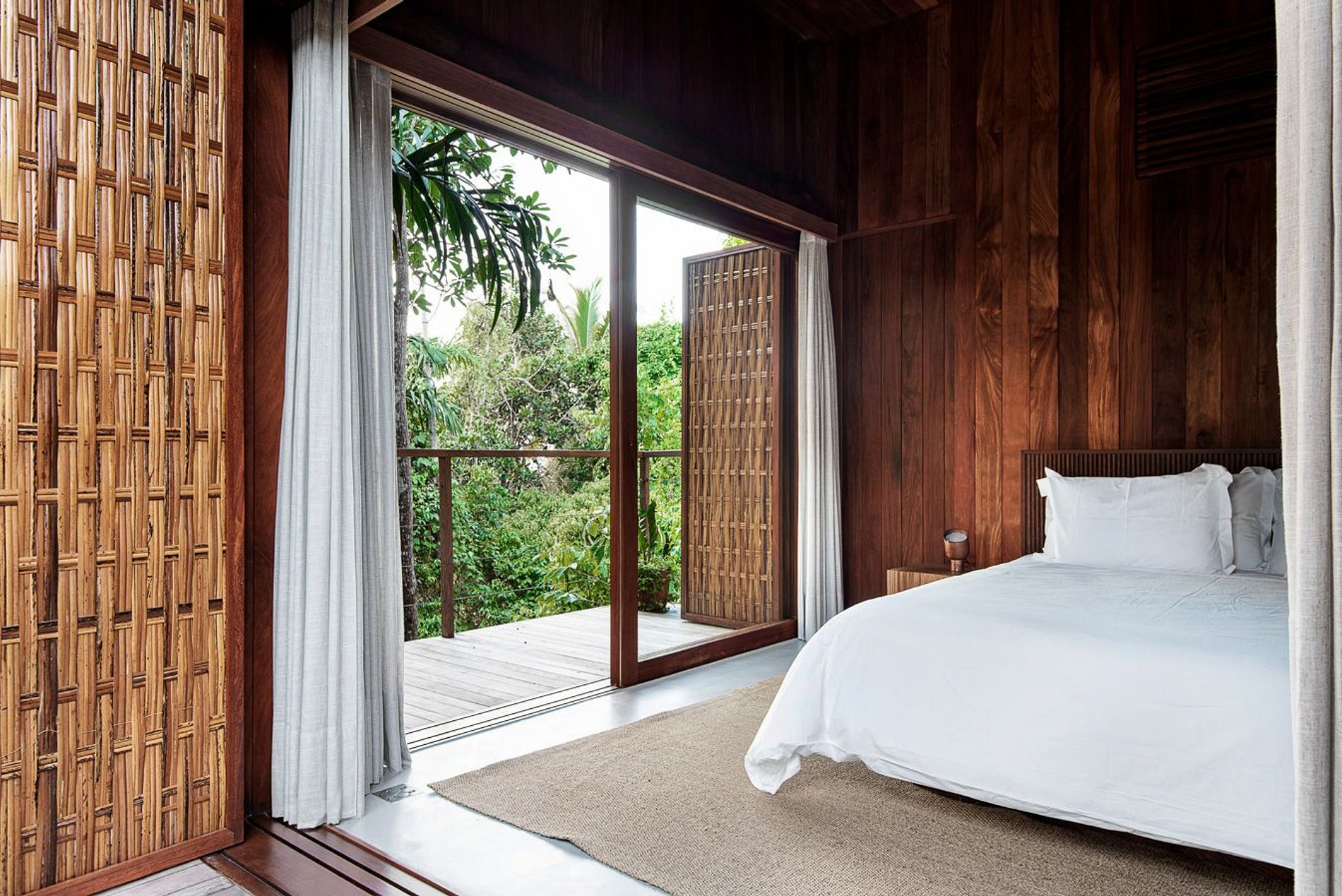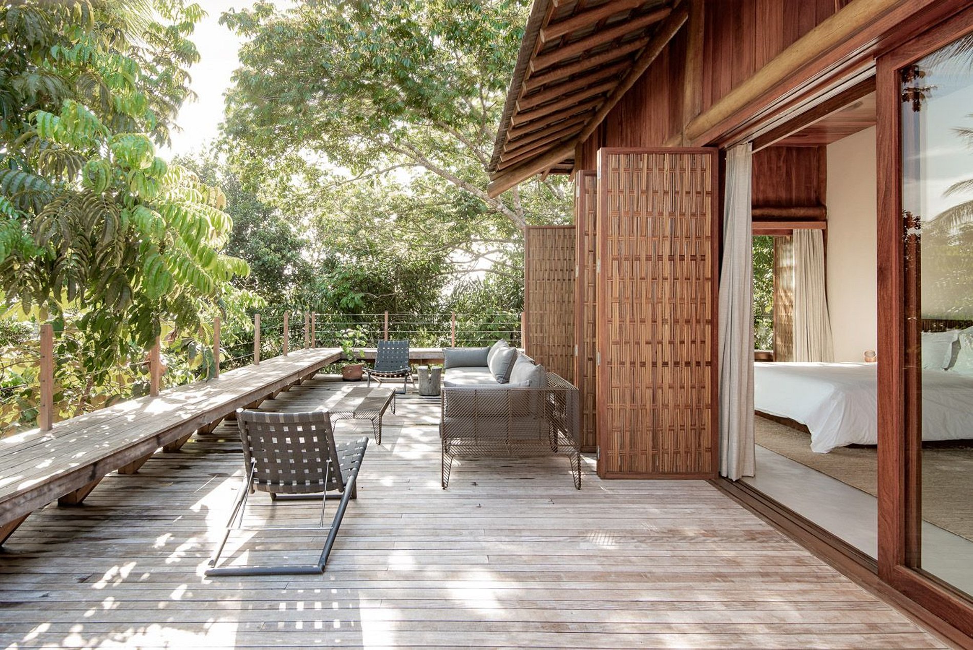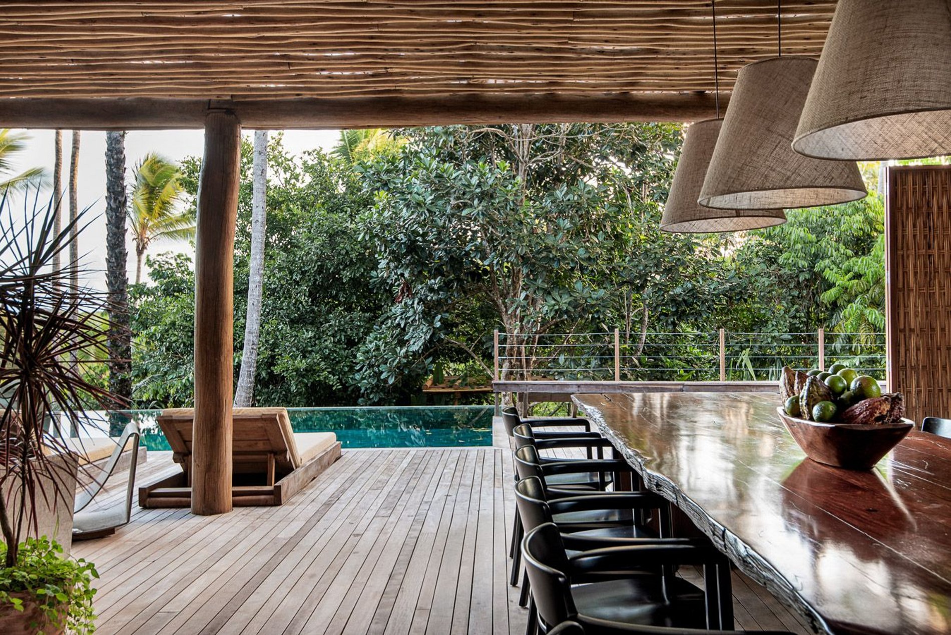 Located in front of the sea, next to the beaches of the city of Itacaré. It has 6 suites, a social area in the central bungalow, a gourmet area under a pergola, a balcony, a private pool and the suites interconnected by decks.