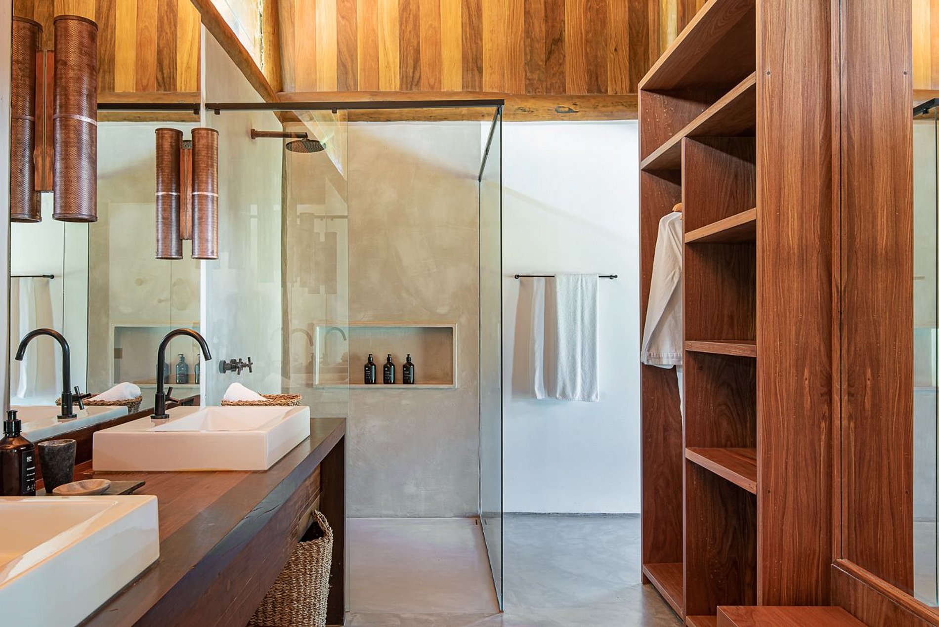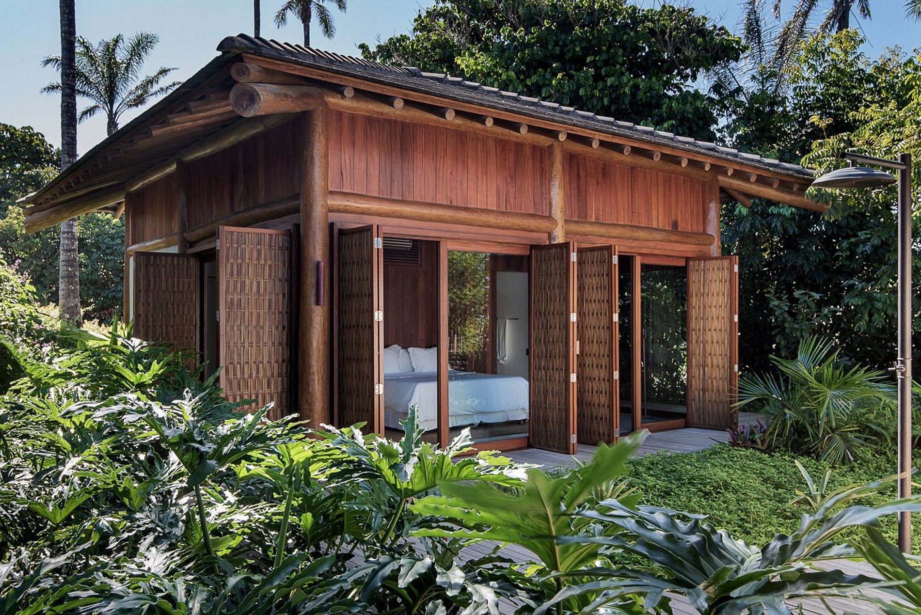Located in front of the sea, next to the beaches of the city of Itacaré. It has 5 suites, a social area in the central bungalow, a gourmet area under a pergola, a balcony, a private pool and the suites interconnected by decks.