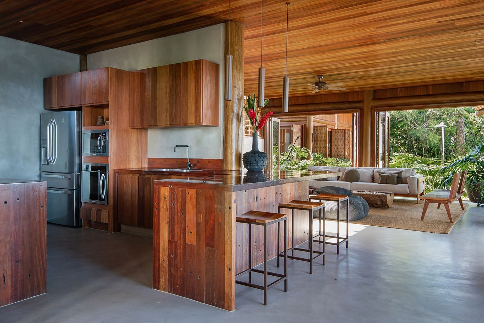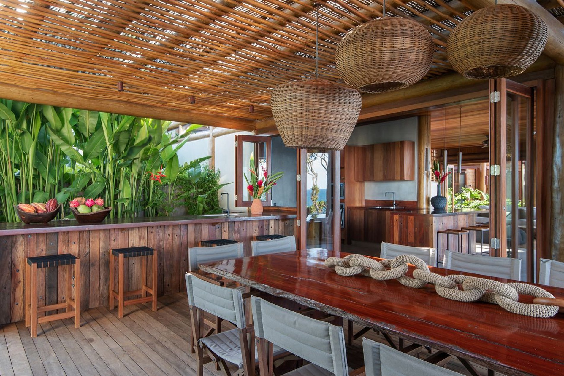 It offers a welcome drink, layette and exclusive vegan bath amenities, personalized organization of tours and experiences, food and beverage delivery service, menu preparation, Chef at Home service, massage, yoga, personal trainer, tennis classes, laundry and transfers