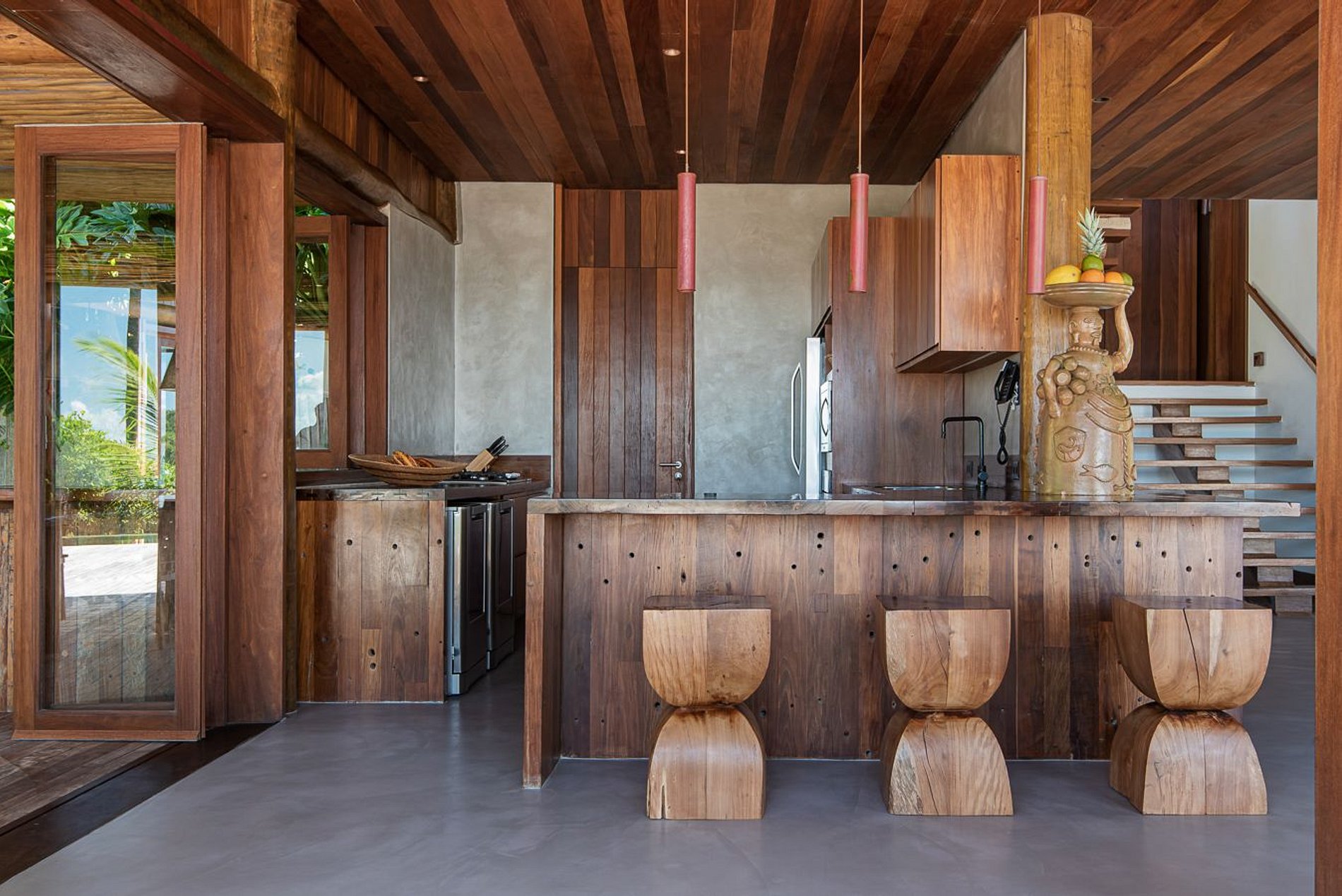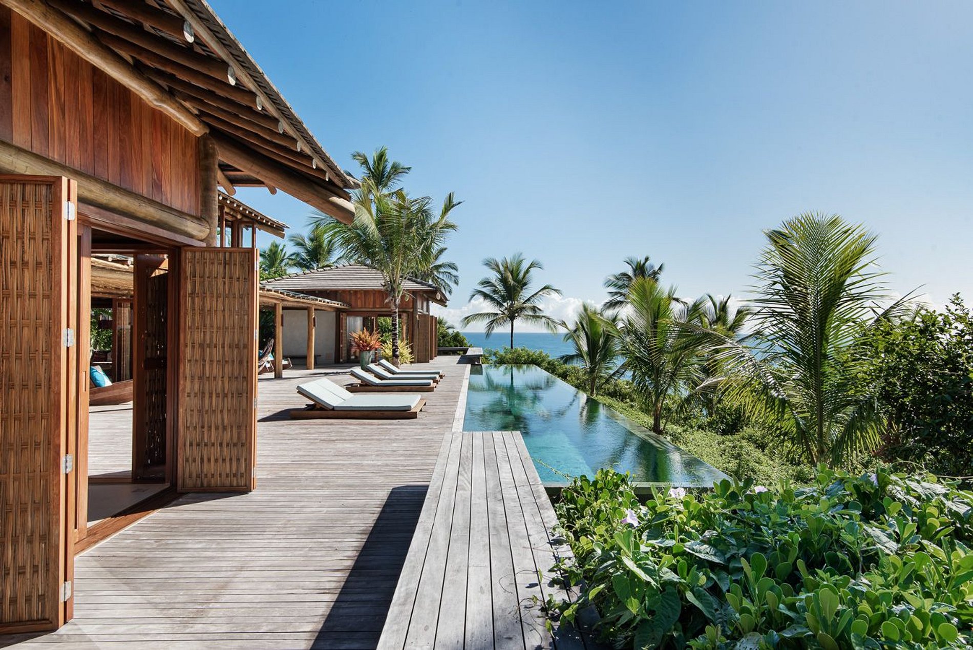 Located in front of the sea, next to the beaches of the city of Itacaré. It has 5 suites, a social area in the central bungalow, a gourmet area under a pergola, a balcony, a private pool and the suites interconnected by decks.