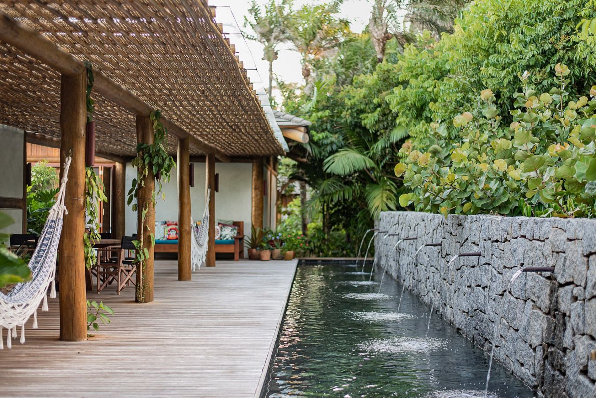 Located in front of the sea, next to the beaches of the city of Itacaré. It has 5 suites, a social area in the central bungalow, a gourmet area under a pergola, a balcony, a private pool and the suites interconnected by decks.