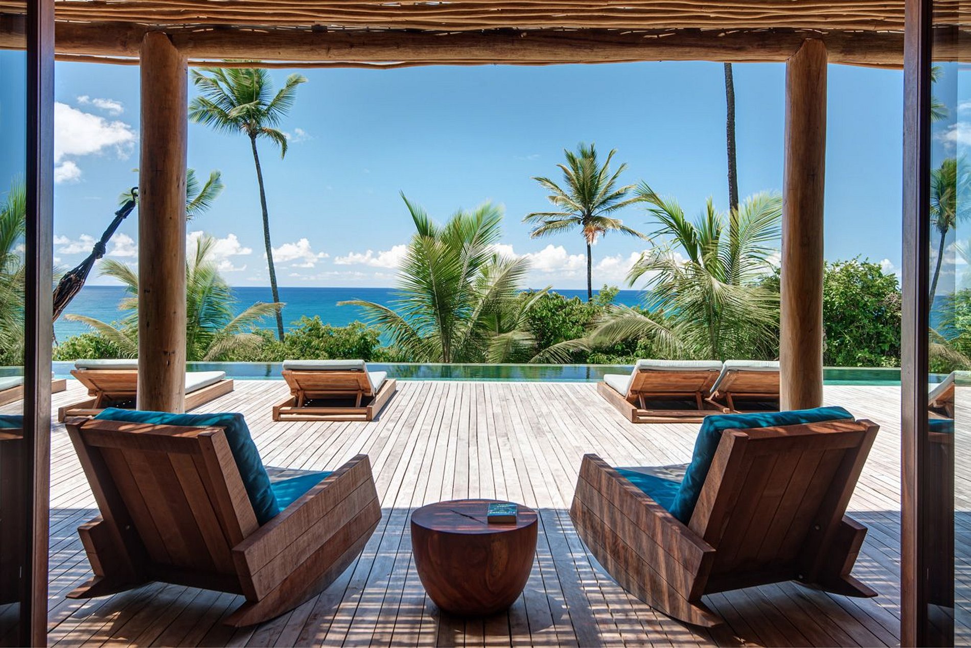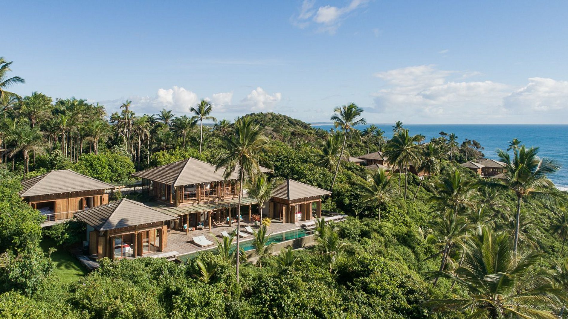Located in front of the sea, next to the beaches of the city of Itacaré. It has 5 suites, a social area in the central bungalow, a gourmet area under a pergola, a balcony, a private pool and the suites interconnected by decks.