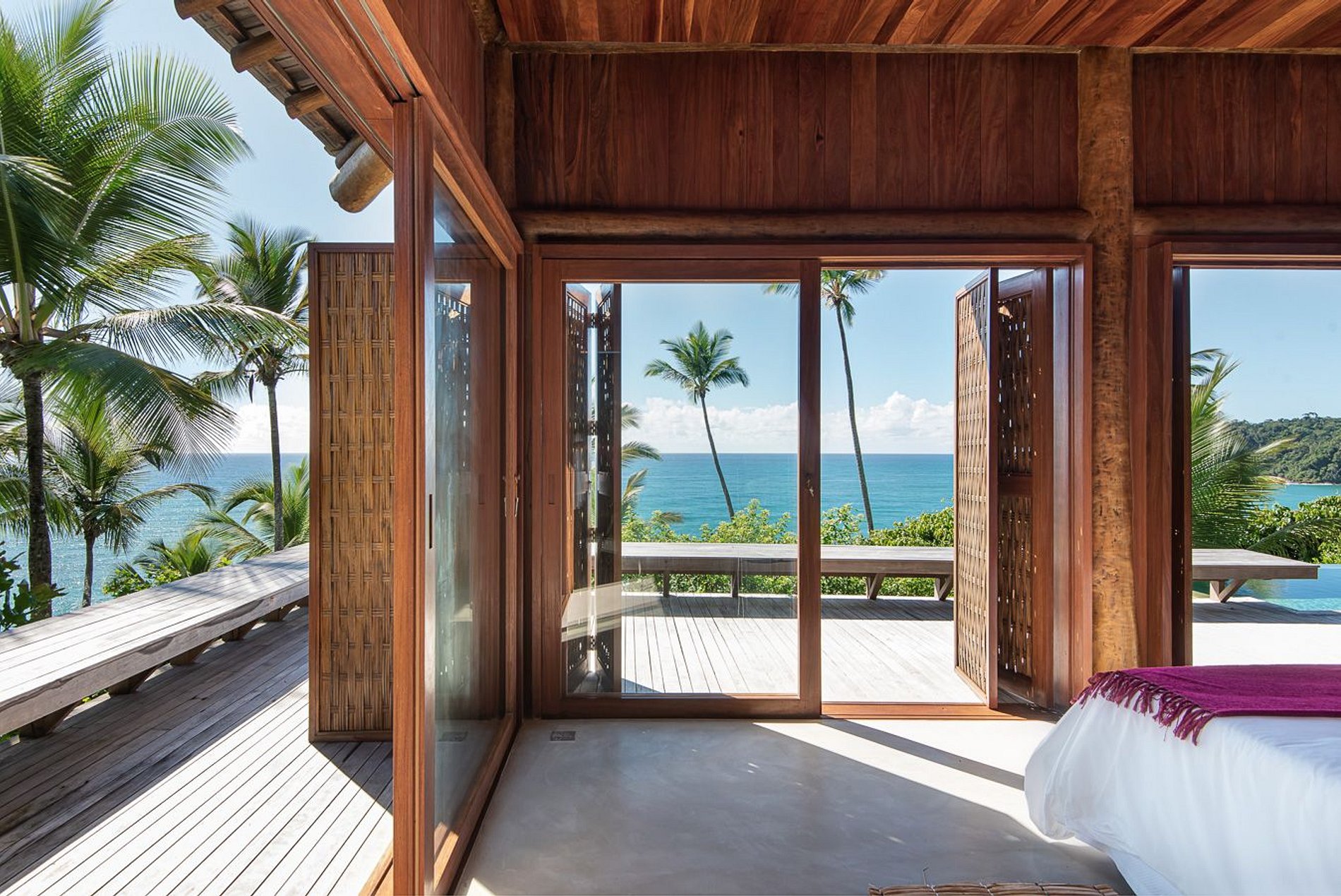 It offers a welcome drink, layette and exclusive vegan bath amenities, personalized organization of tours and experiences, food and beverage delivery service, menu preparation, Chef at Home service, massage, yoga, personal trainer, tennis classes, laundry and transfers