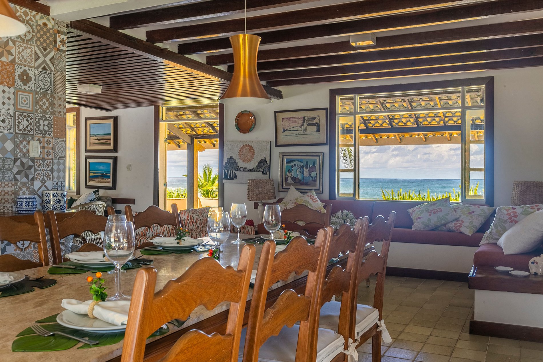 It has comfortable living and dining rooms, 6 suites and 1 more bedroom. Sleeps a maximum of 14 adults and 4 children.