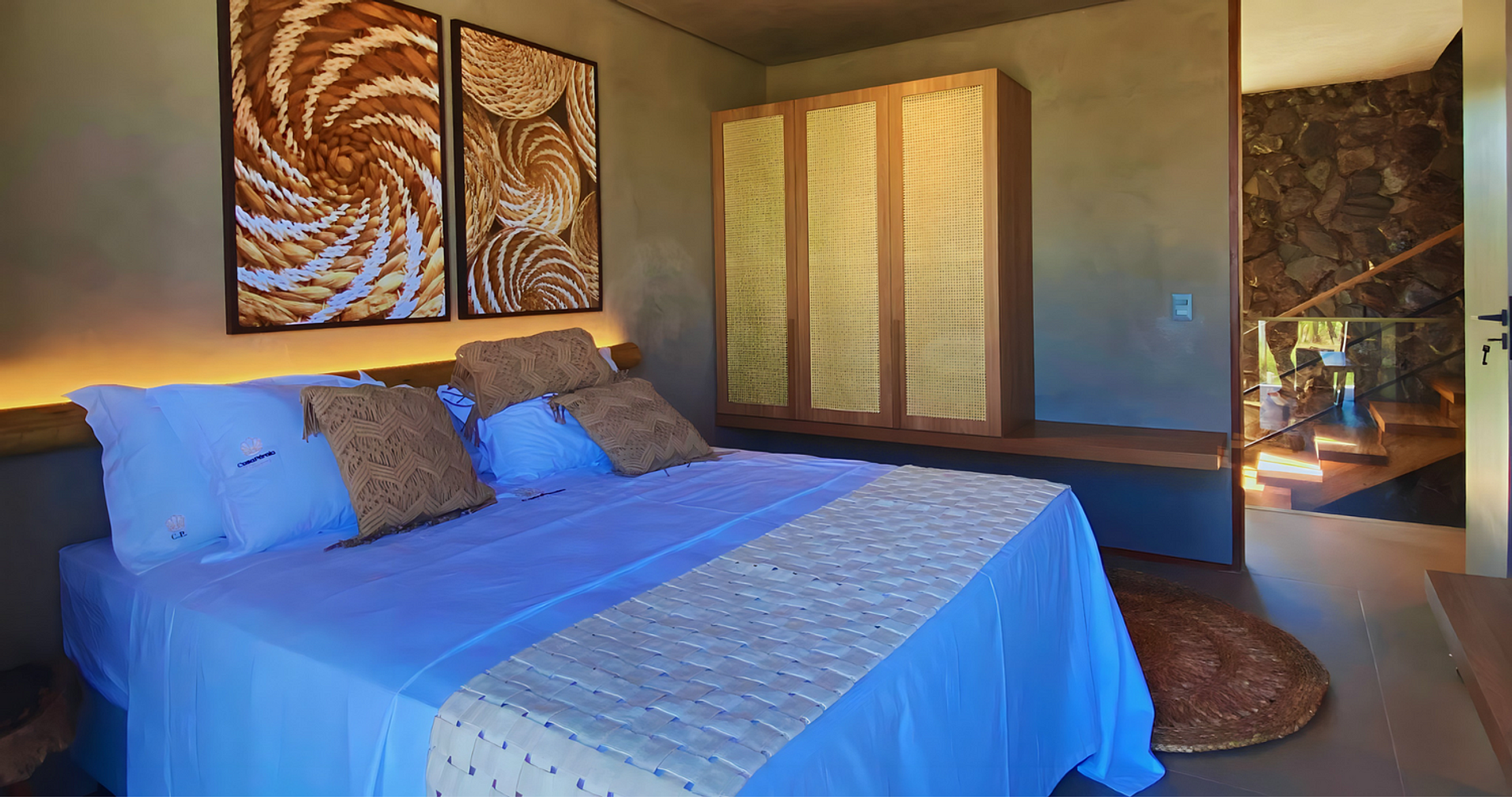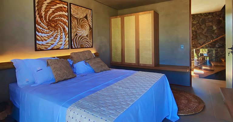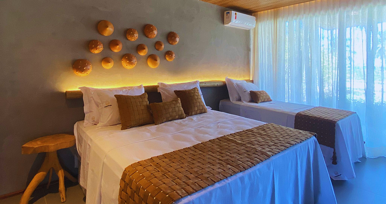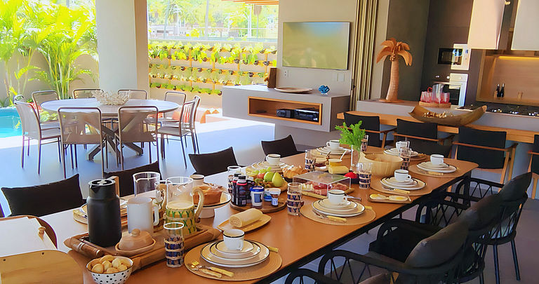 The architecture of Ana Karina Cansanção, whose motto is to unite the beautiful with the functional, its decoration enchants by combining modern furniture with paintings and handicrafts by regional artists, a strong point of the region.