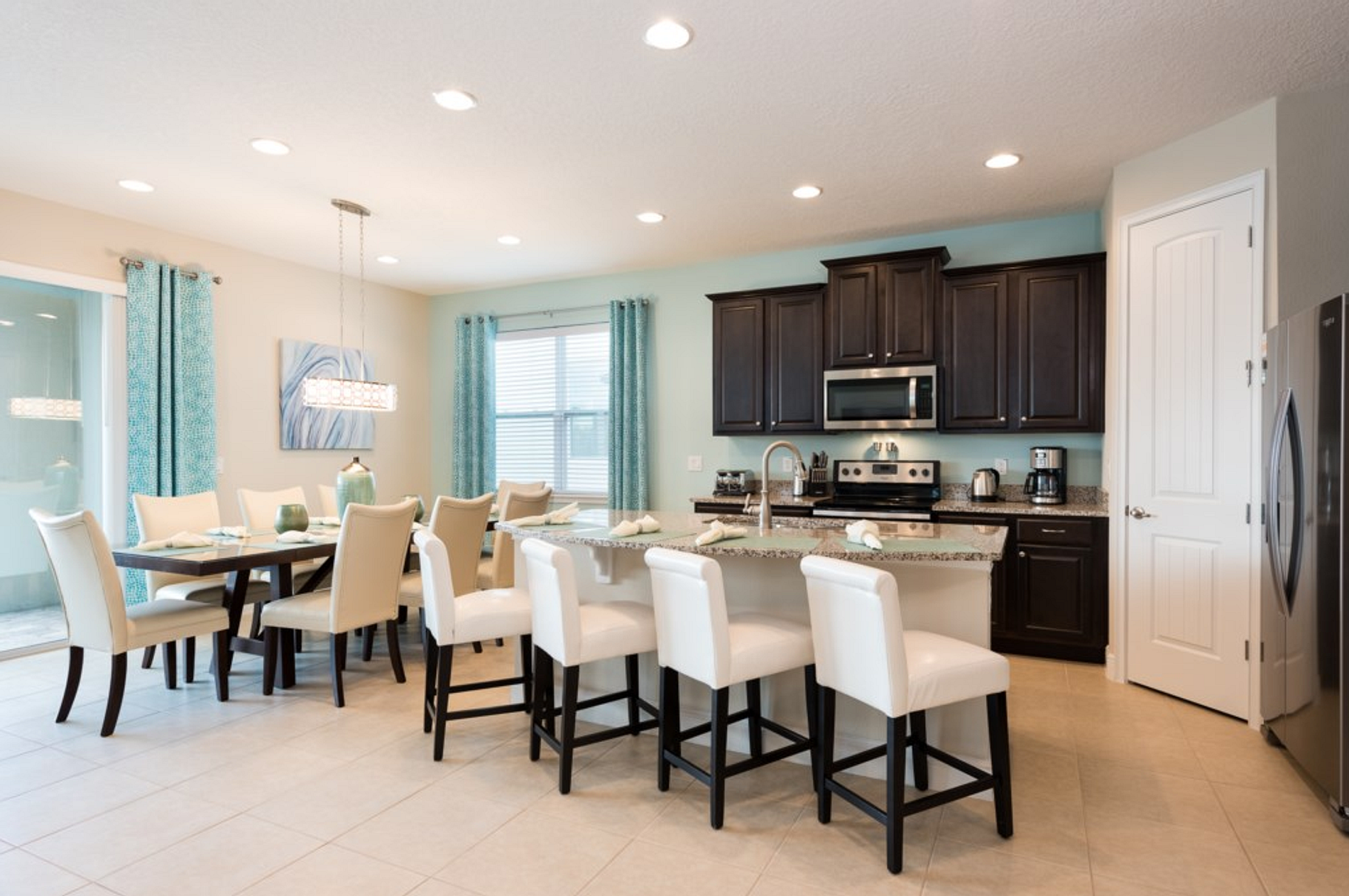 Orlando Aqua Park is a resort with 5-11 bedroom homes, all with private pool, super tastefully decorated and high quality standards. The resort offers free transportation to Disney parks plus concierge service. Fitness center, restaurants, sports bar and a water park with amazing super-fast slides, waterslides, a splash zone for kids of all ages who will spend hours having fun while their parents can relax by the pool or enjoy a meal at the pool. restaurants. The location is perfect, next to Disney parks and all the attractions and restaurants in town!
