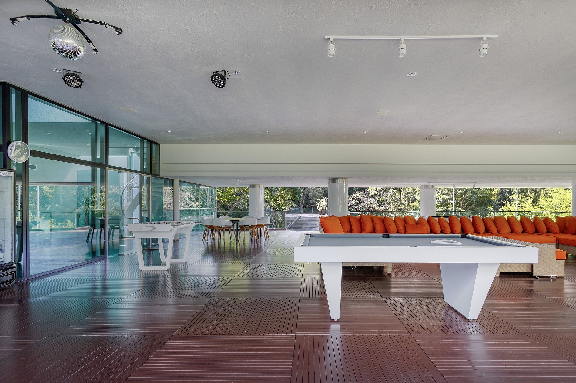 It has 6 suites, 3 with bath. Games room, massage room with sauna, gym, TV room, living room, dining room, office, full kitchen and laundry. And in the outdoor area, swimming pool and garage.