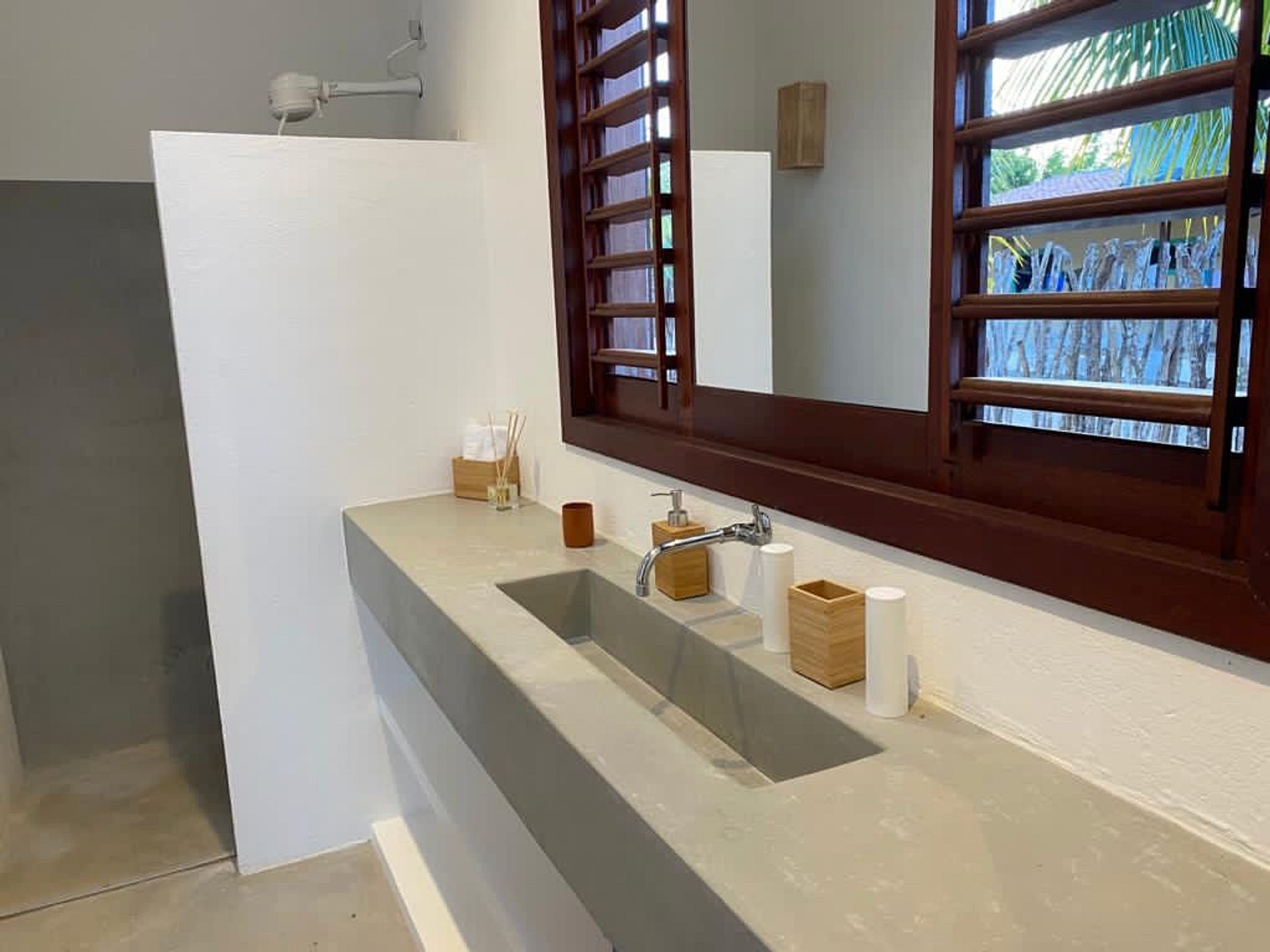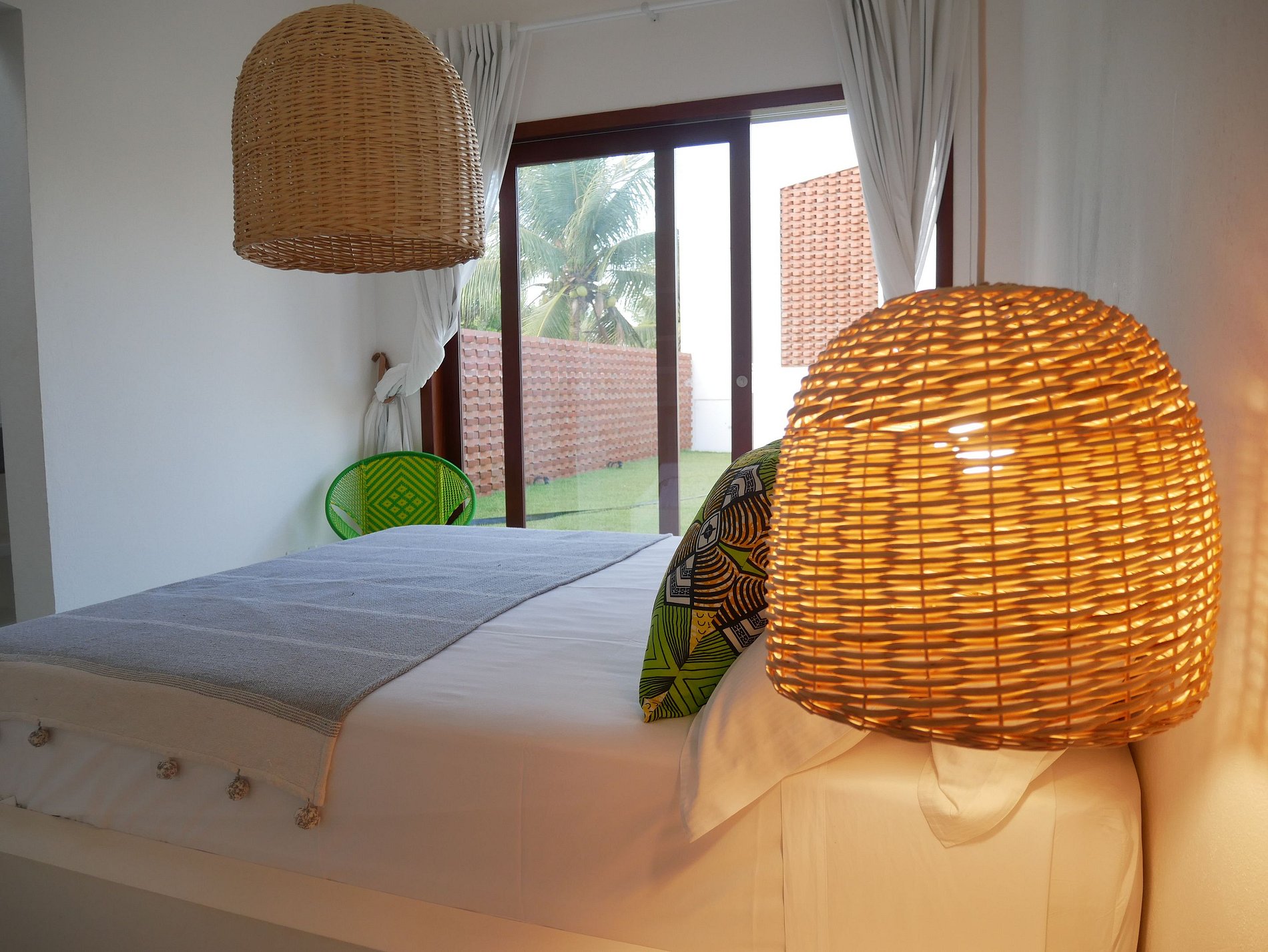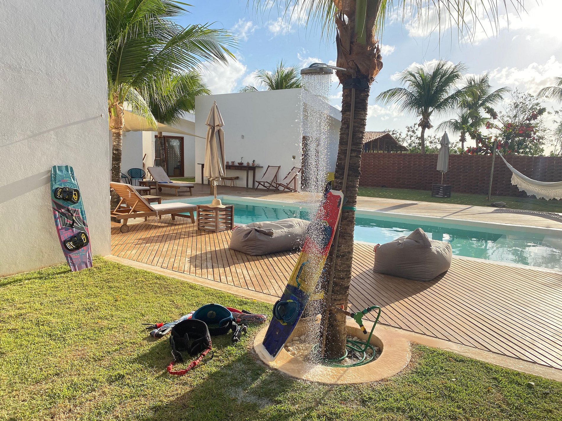 Recently built, it offers an outdoor area with a beautiful view of the sea, sand, coconut trees and a 45m2 pool, with deck and sun loungers, as well as a covered outdoor terrace with barbecue, large table for meals and views of the beach.
