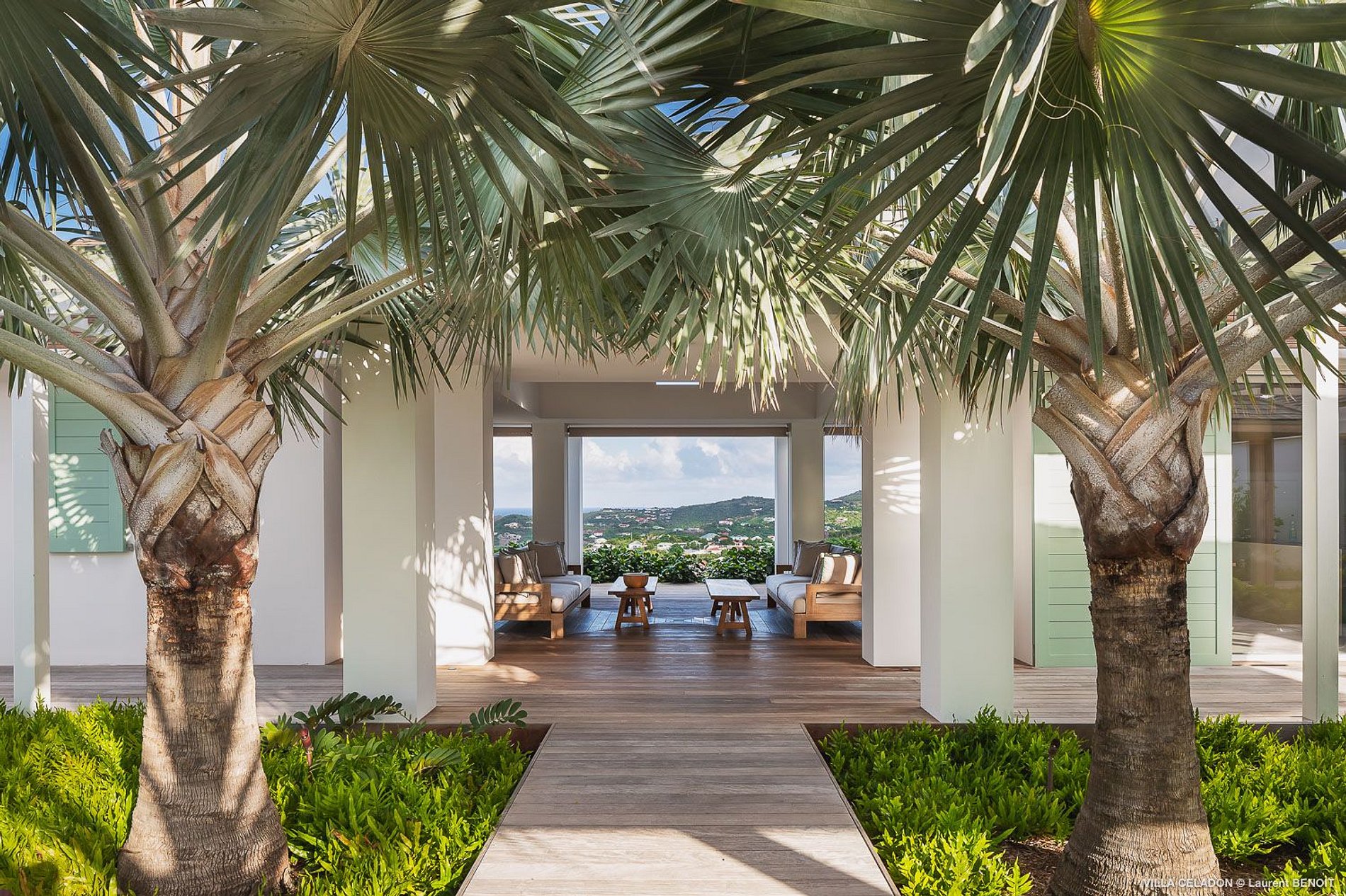 From the moment you arrive at the impressive entrance to Villa Celadon (CLD), you know that the luxury rental property is a departure from the ordinary. The villa is large, with five bedrooms and various outdoor and indoor living areas in a series of airy, breezy pavilions.