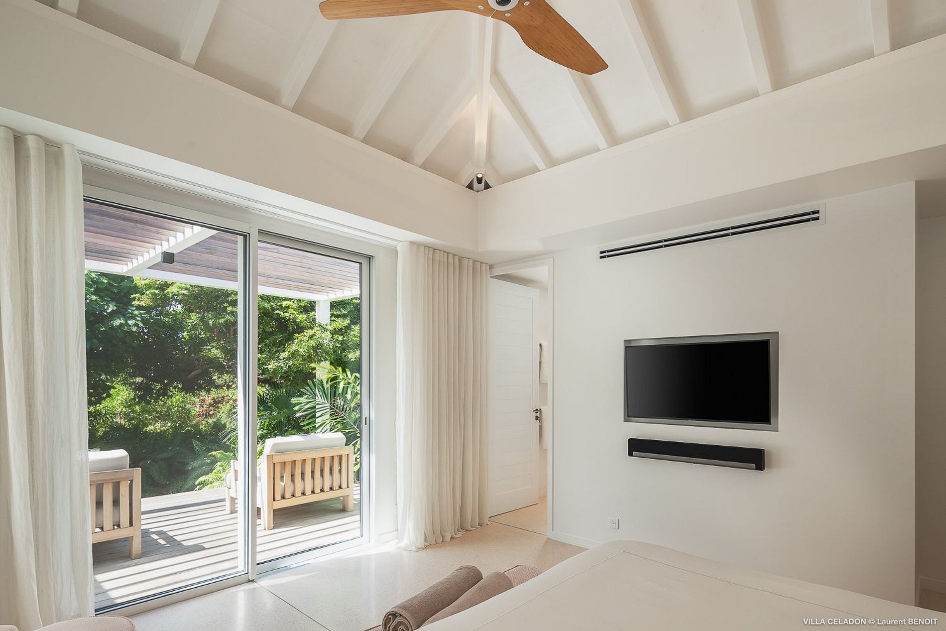 Throughout the villa, everything is decorated in a modern, clean style with pastel colors. Chief among those is the soothing light blue color from which the house takes its name. Despite the modern leanings, the home is warm and welcoming. From its location within the gated community of Mont Jean, it enjoys a large garden on the property, and views of Marigot Bay and the hills around it in the background.