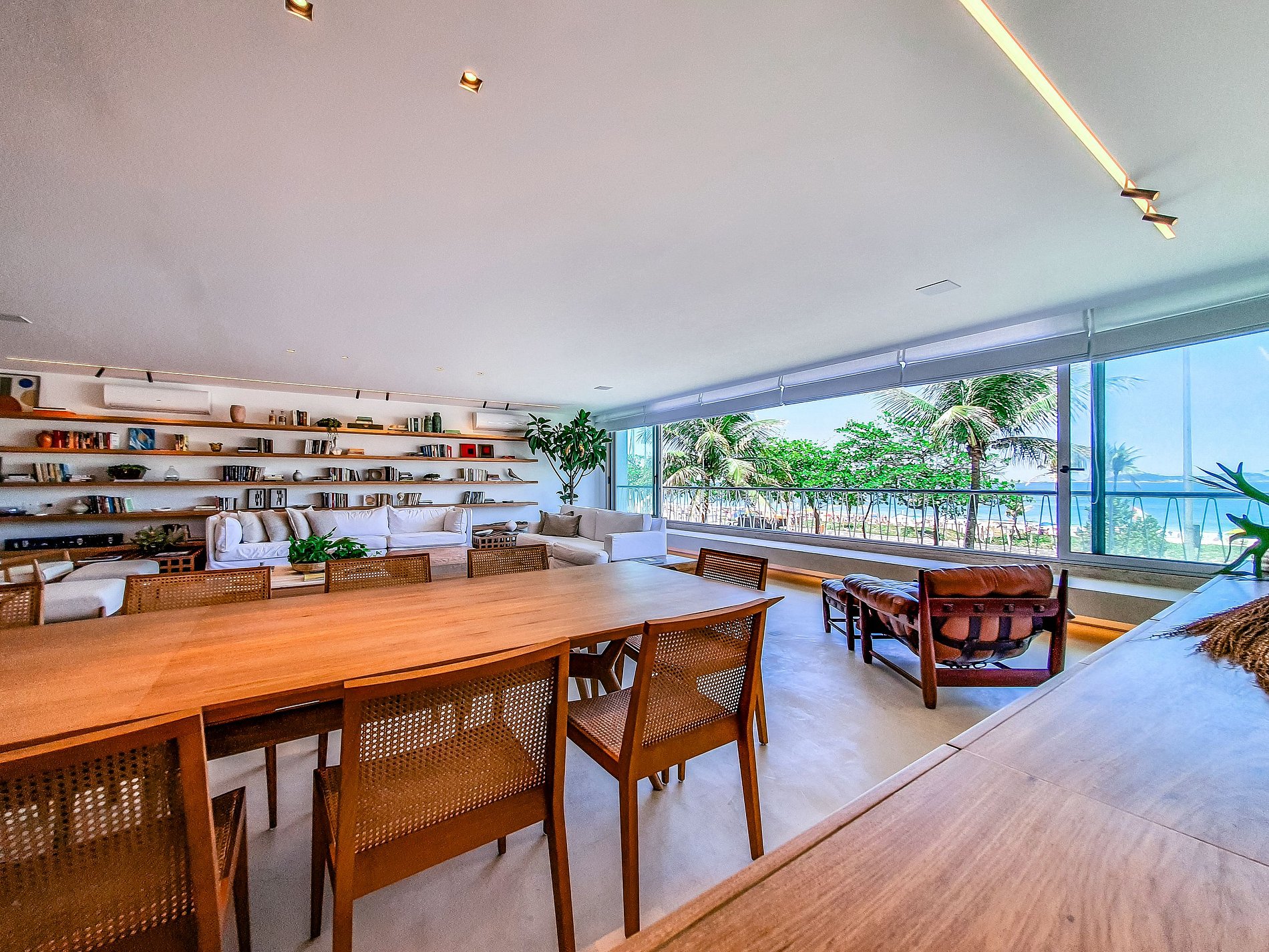 The integrated living and dining room are the best places to enjoy the fantastic view of the beach.