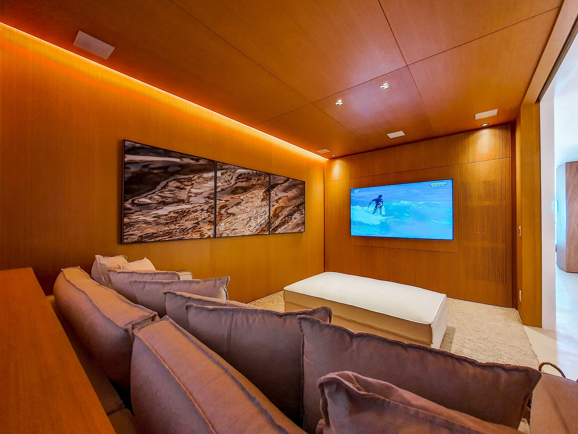 The decoration, designed by architects Luiza Bottino and Valeska Ulm, includes works of art such as paintings by Ari Kaye, handmade art by Carolina Kroff and Sergio Rodrigues armchair.