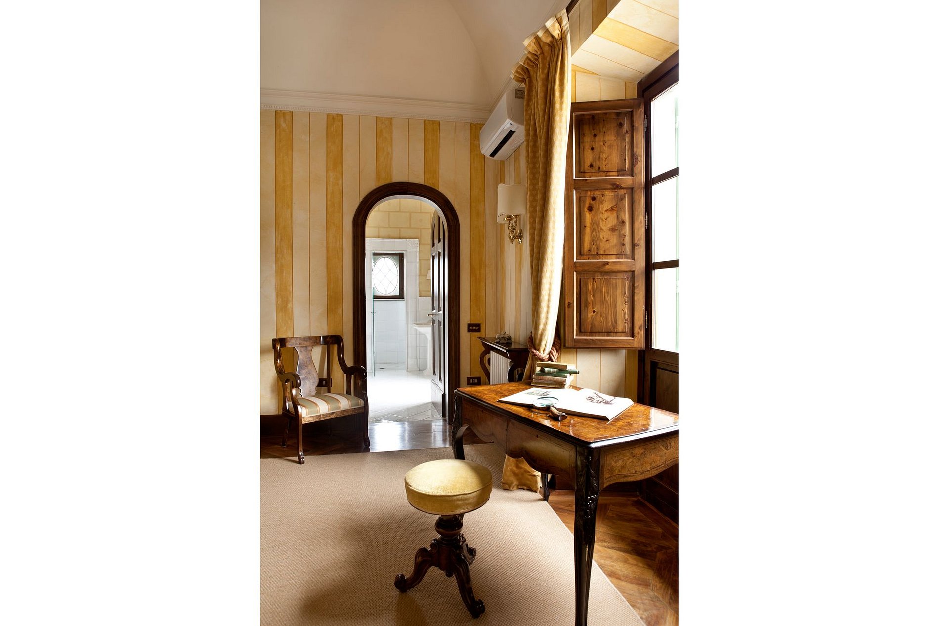 Today the Dimora is an exclusive location for V.I.P.s, large families, events or meetings, with 10 double bedrooms with en suite bathrooms, a meeting room, dining room, study, heated indoor swimming pool, gym, billiard room and sauna. Each suite has its own unique features, such as the canopy bed and oriental-style wallpaper of the Royal Suite. A residential staff is always at guests’ disposal to ensure exclusive, highly personalized service.