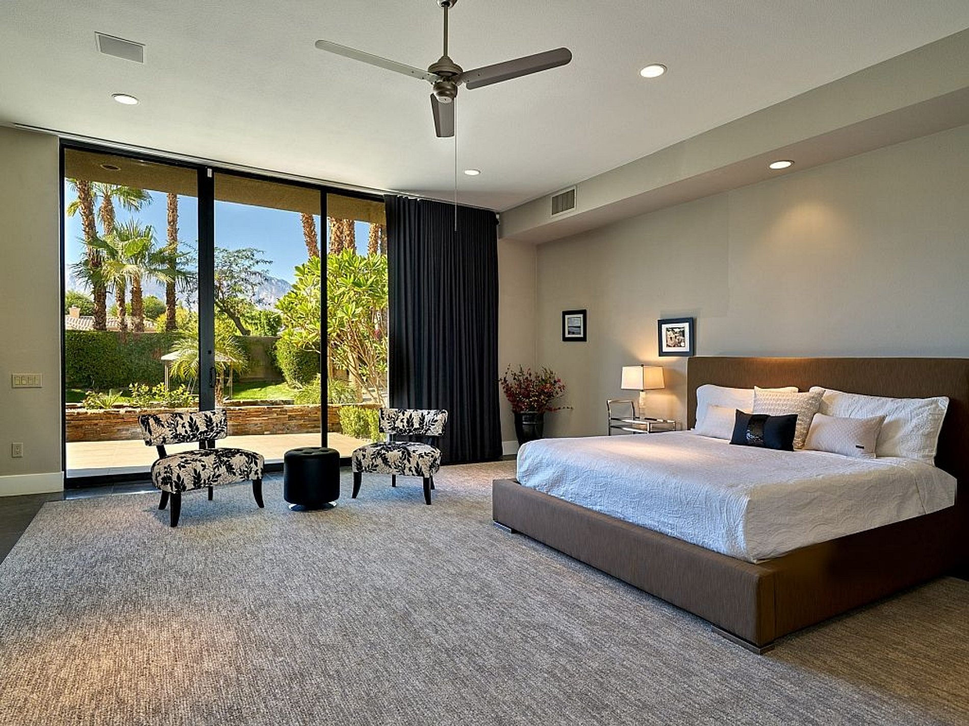 Reflecting a sophisticated merging of inspiration and architecture, the residence exudes modern desert living. Its open, airy layout, graced by soaring ceilings and expansive walls of glass, provides lots of natural light and a multitude of vantage points for gazing at the magnificent mountain vistas.
