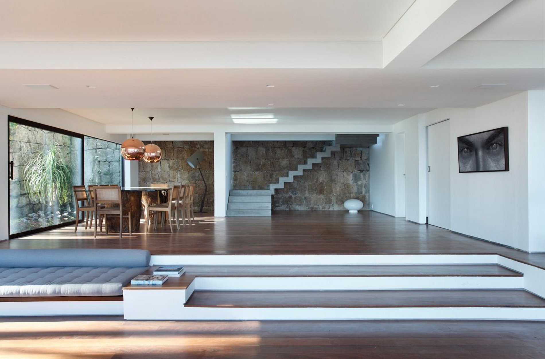 Rooms integrated in different environments, with space for reading, dining, office and to relax and watch the sunset.