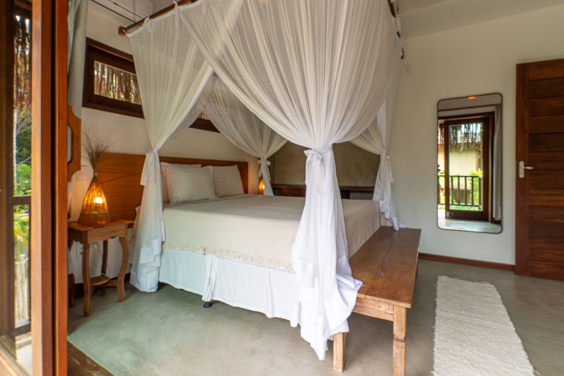 Apenas o som da natureza, da mata ao redor, criando um ambiente perfeito para descanso. É o tipo de lugar que convida a desacelerar, respirar fundo e viver Trancoso da forma mais autêntica possível: em harmonia com a natureza, com conforto, privacidade e muito charme.