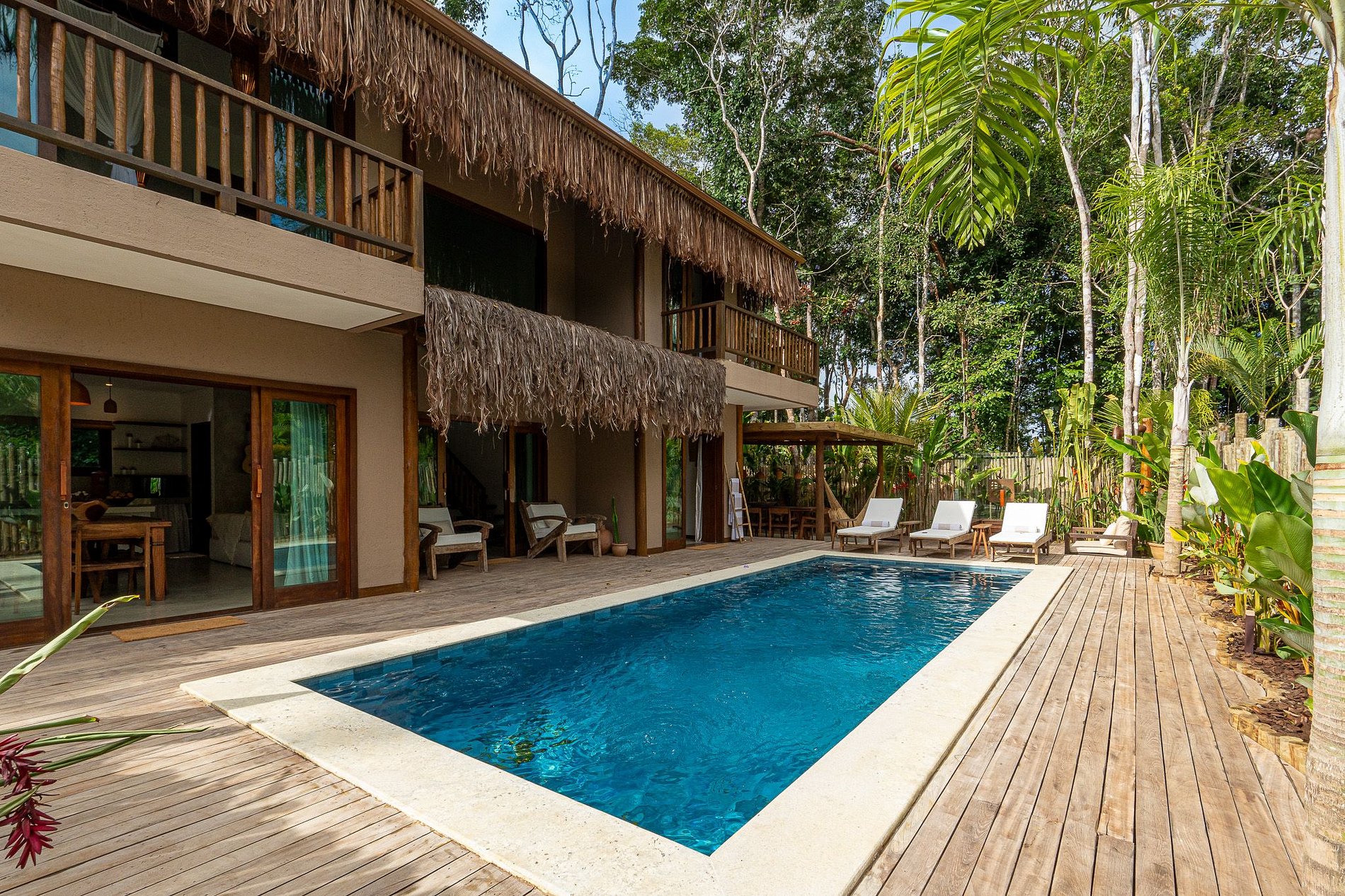 Apenas o som da natureza, da mata ao redor, criando um ambiente perfeito para descanso. É o tipo de lugar que convida a desacelerar, respirar fundo e viver Trancoso da forma mais autêntica possível: em harmonia com a natureza, com conforto, privacidade e muito charme.