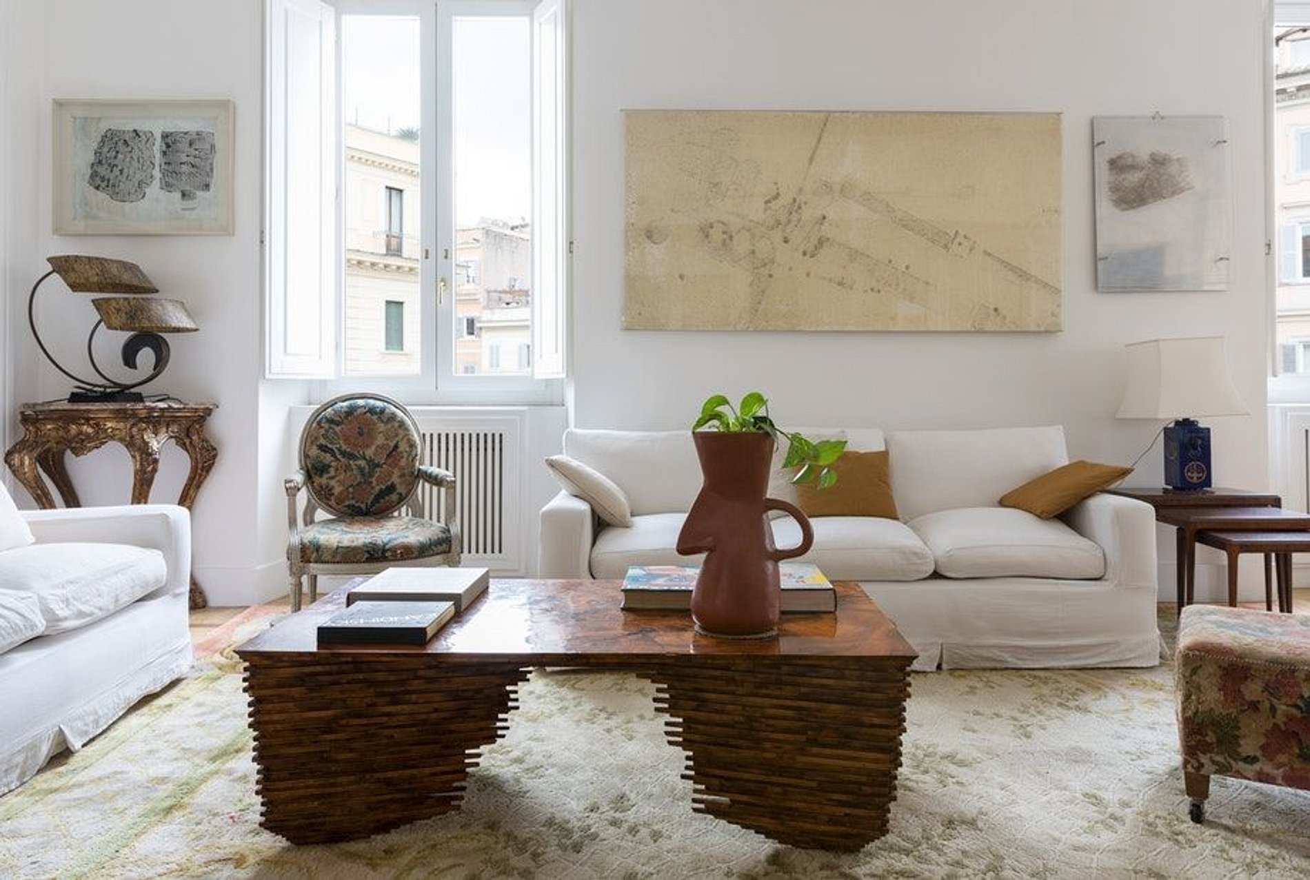 Apartamento Vittorio é uma propriedadecom quatro quartos e três banheiros em Navona-Pantheon-Venezia. A sala de estar desta casa é mobiliada com uma mistura de peças antigas e retrô, além de abrigar muitos livros e algumas obras de arte contemporânea realmente marcantes. Os quartos são tão característicos, cada um feito distintivo por um flash de cor ousada, uma peça de destaque (como a cama dourada do segundo quarto) ou uma tela única. Esta área histórica, repleta de restaurantes tradicionais, e o famoso Castel Sant 'Angelo estão muito próximos. Fica a cerca de 20 minutos a pé da estação de metro Ottaviano.
