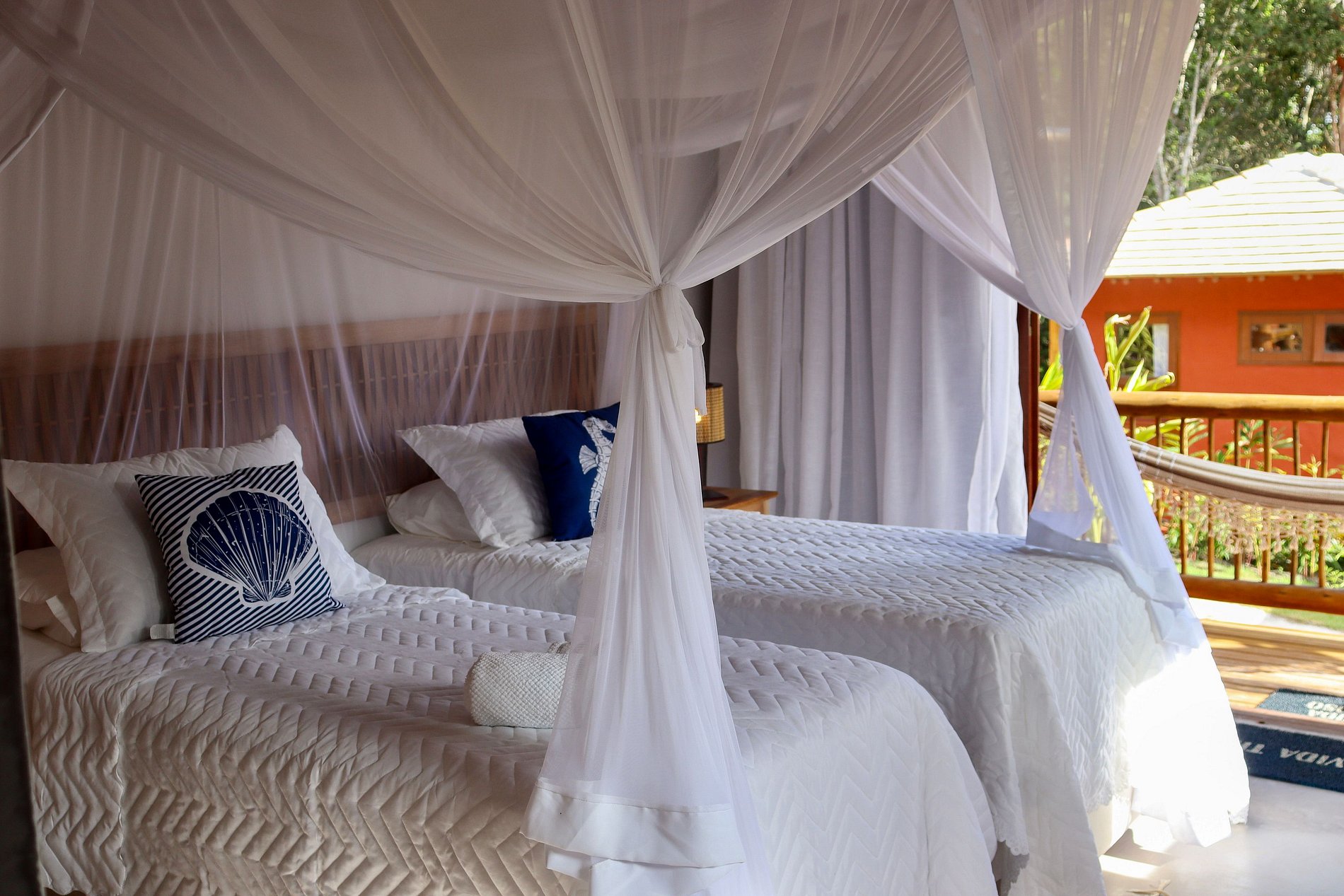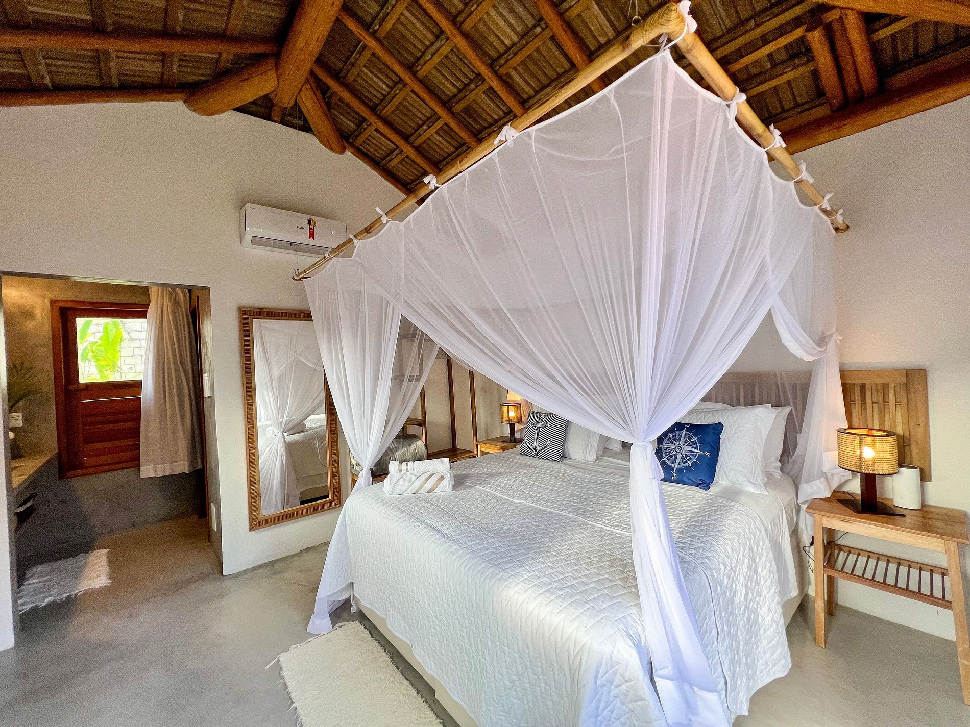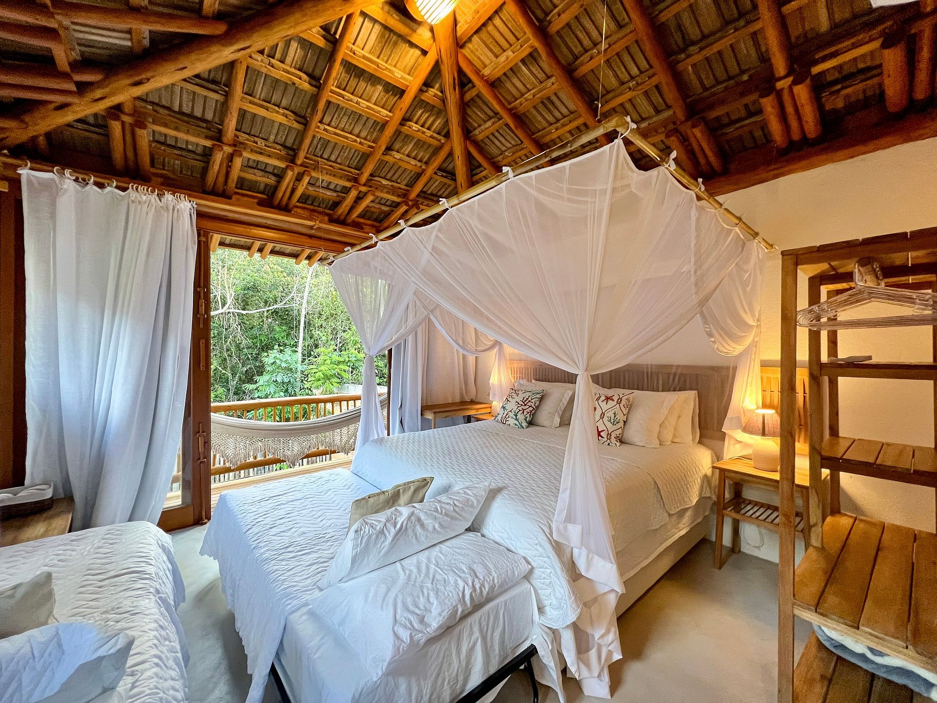 São 5 suítes (bangalôs) separadas ao longo do terreno. Cada bangalô tem uma cama de casal king ou duas de solteiros e vista para a mata. Acomoda entre 10 a 20 hóspedes, dependendo da posição das camas.