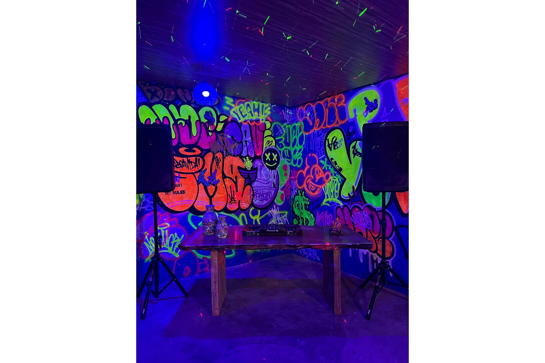 No subsolo há uma boate subterrânea acústica com bar e sistema de som profissional.