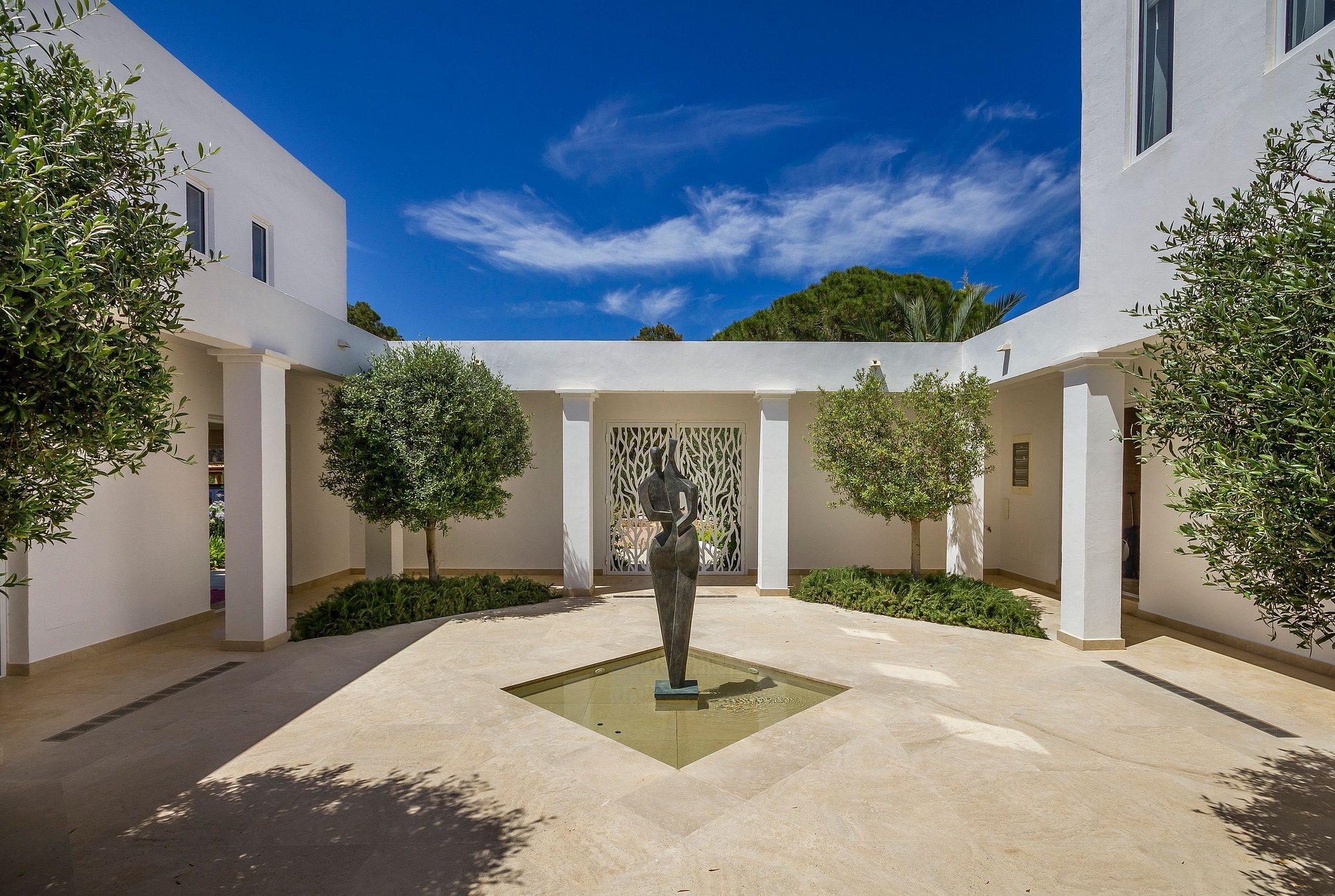 No coração do arquipélago das Baleares, a sudeste de Ibiza, encontra-se a luxuosa Villa Antonella, próxima praia de Niu Blau, também conhecida como Bora Bora. Localizada na região de Santa Eulària des Riu, esta vila de luxo em Ibiza reina em um magnífico jardim com vista para o mar azul-turquesa.