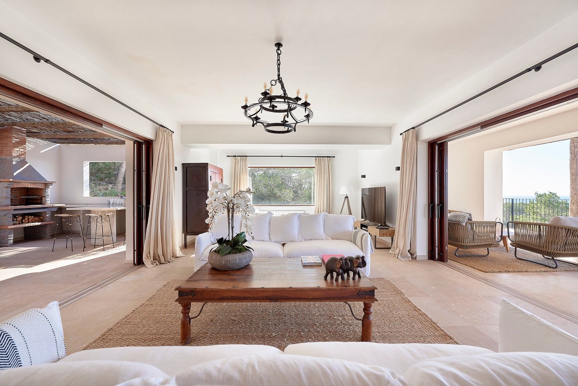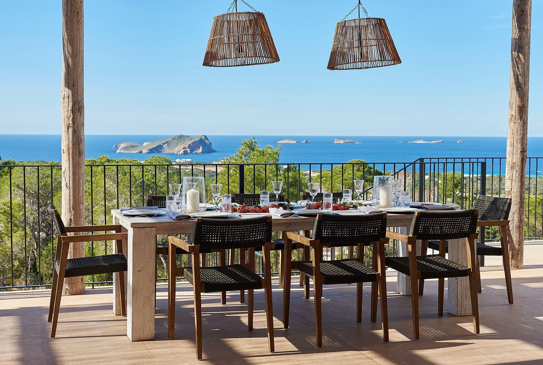 A Vila Estrela fica na Cala Codolar, em Ibiza, cerca de 07 quilômetros do centro da Ilha. Praia super privativa com mar tranquilo e com serviços de cadeiras, bar e restaurante. São 04 quartos super bem decorados e com vista deslumbrante que acomoda confortavelmente até 8 pessoas. Destaque da casa fica para o terraço com sofás e cadeiras com linda paisagem direto para o mar. Além disso, conta com churrasqueira e espaço de varanda super amplo para reuniões com os amigos.