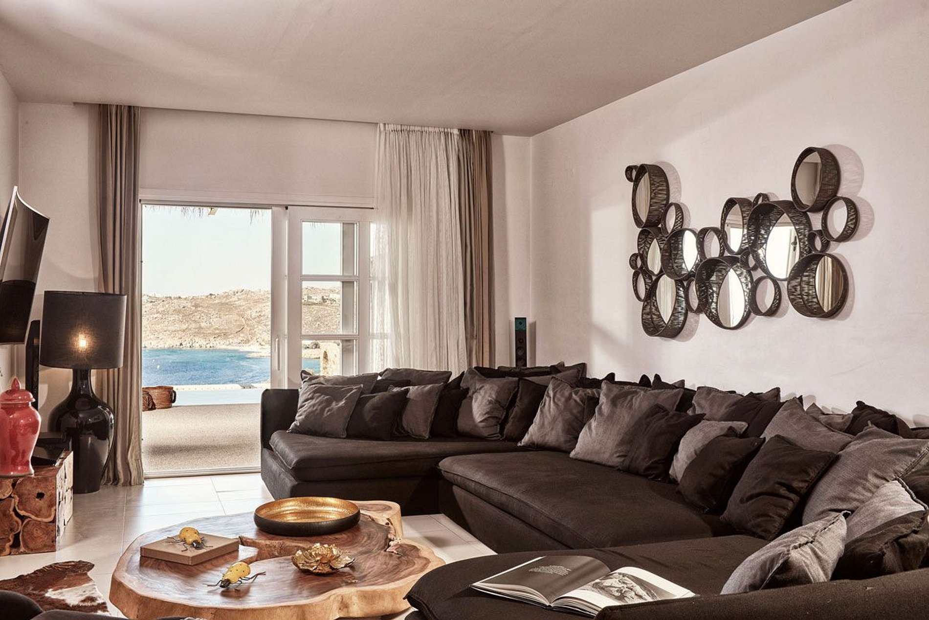 A Villa Paraíso em Mykonos possui 6 quartos e total conforto.