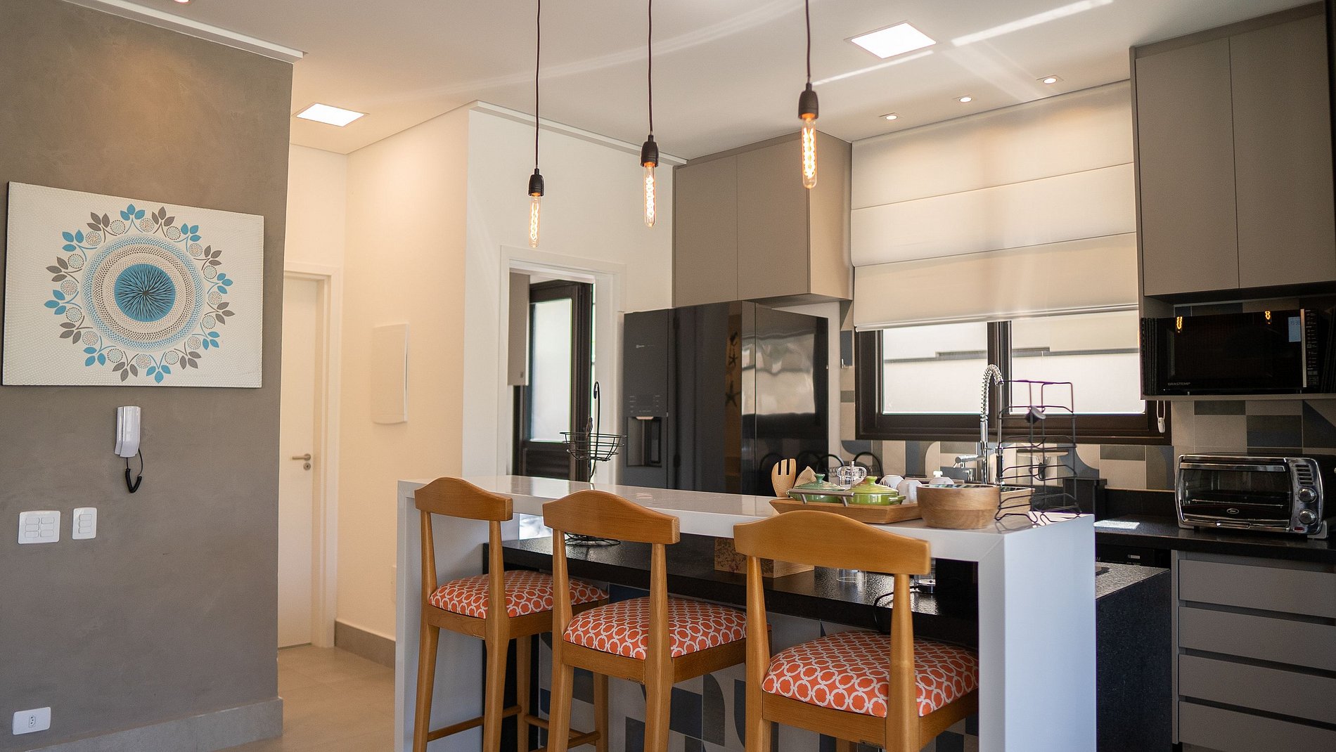A casa recém construída, integra a piscina climatizada à sala de estar e a à área gourmet com fogão digital, forno, churrasqueira, cervejeira e máquina de gelo, tudo para poder aproveitar bons momentos ao lado da família e amigos.