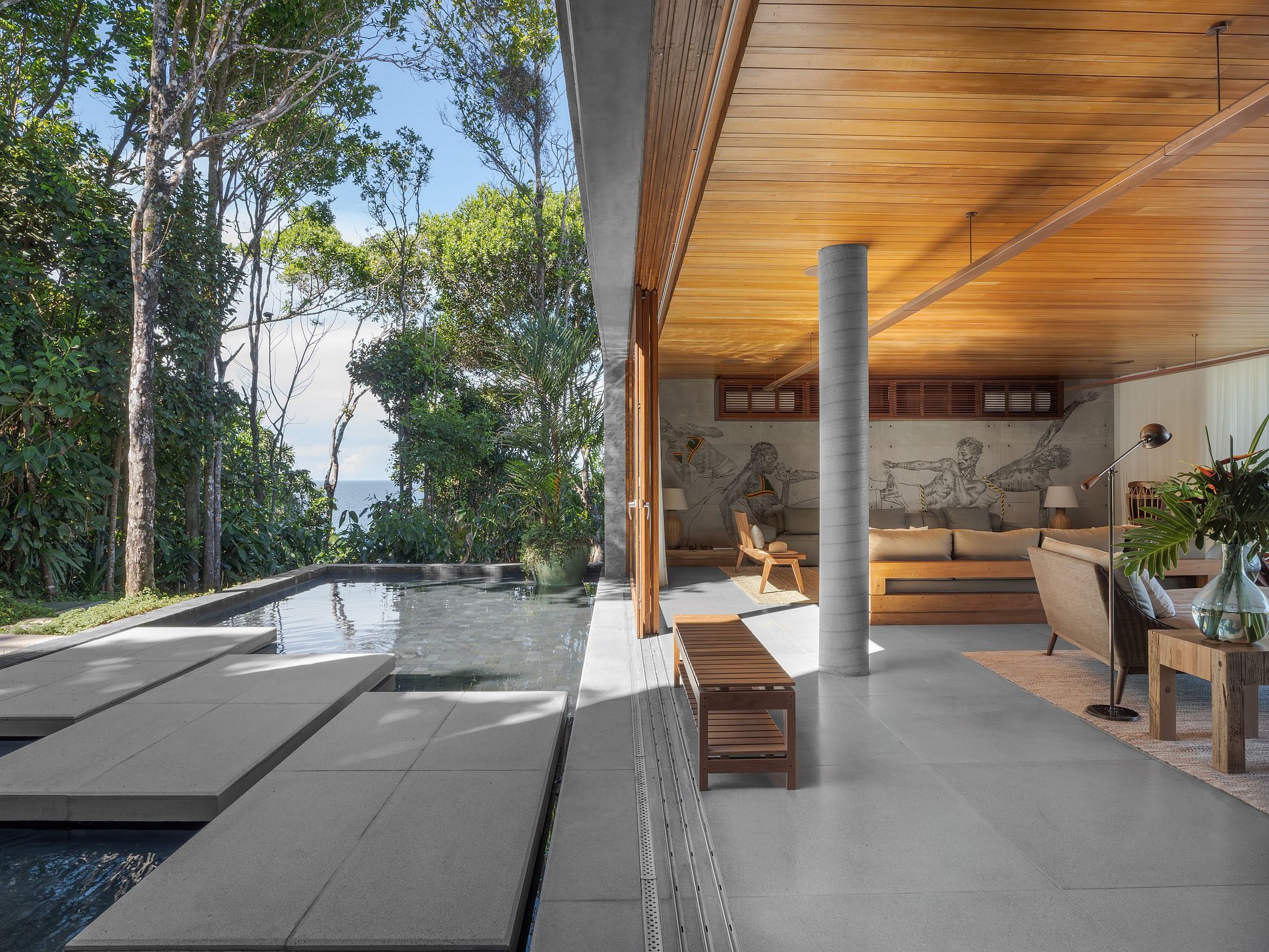 Com vista para nascer do sol de frente e para o oceano, tem uma piscina de pedra Hijau, com deck de madeira e mais um deck, no andar superior. Outros 2 decks, um ao pôr do sol de frente para a Mata Atlântica e um deck de ioga cercado por árvores, espreguiçadeiras e um sofá ao ar livre para relaxar.
