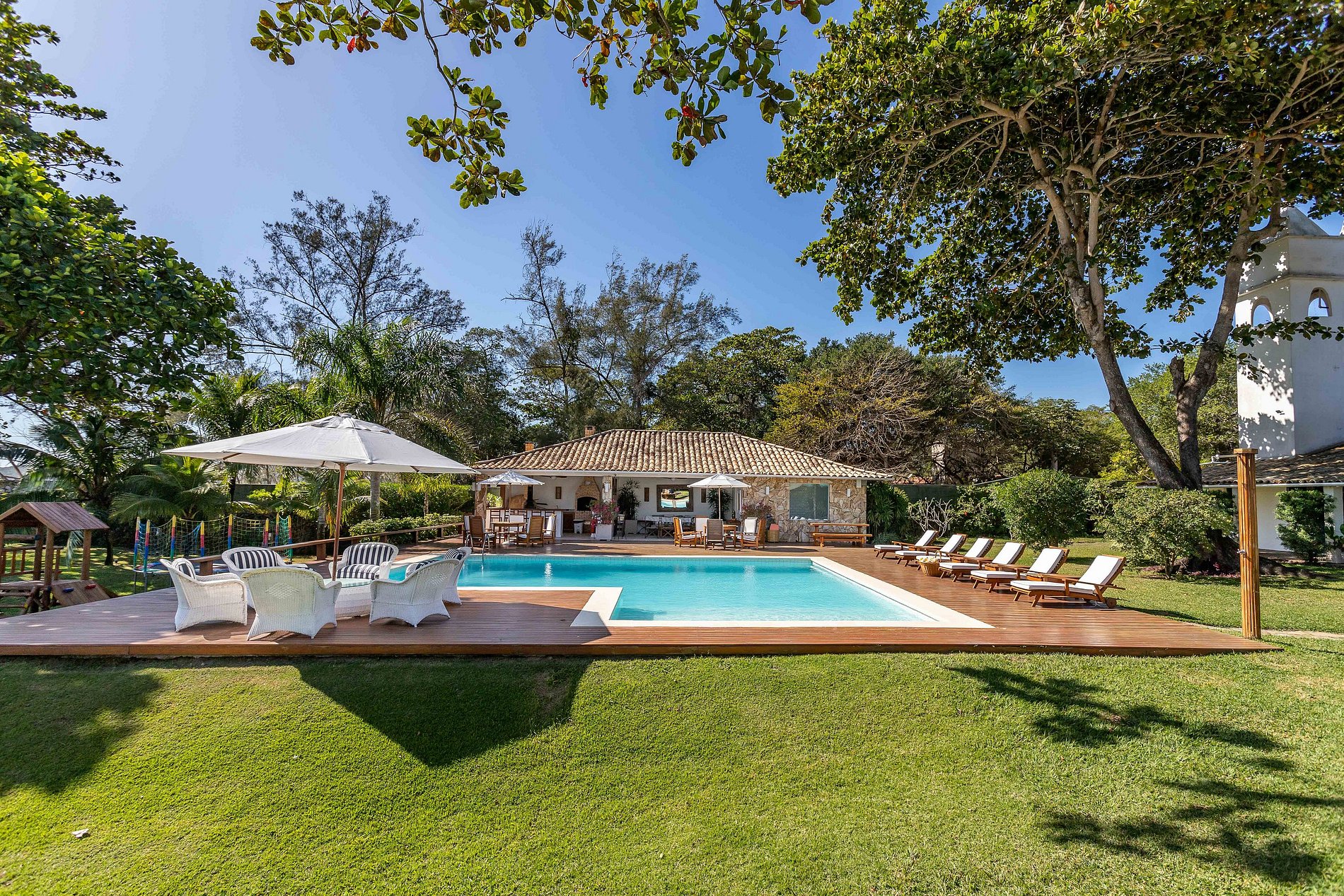 Face à la mer, sur la plage de Manguinhos à Búzios, cette magnifique maison de plage, impeccable dans les moindres détails, fera en sorte que ses hôtes se sentent confortables et accueillis. Elle dispose d'une maison principale et d'une charmante annexe. Idéale pour réunir la famille et profiter de moments de détente. Elle dispose d'un beau jardin, d'une piscine, d'un barbecue, d'un sauna et d'un four à pizza. MAISON AVEC 10 SUITES ET 2 CHAMBRES.