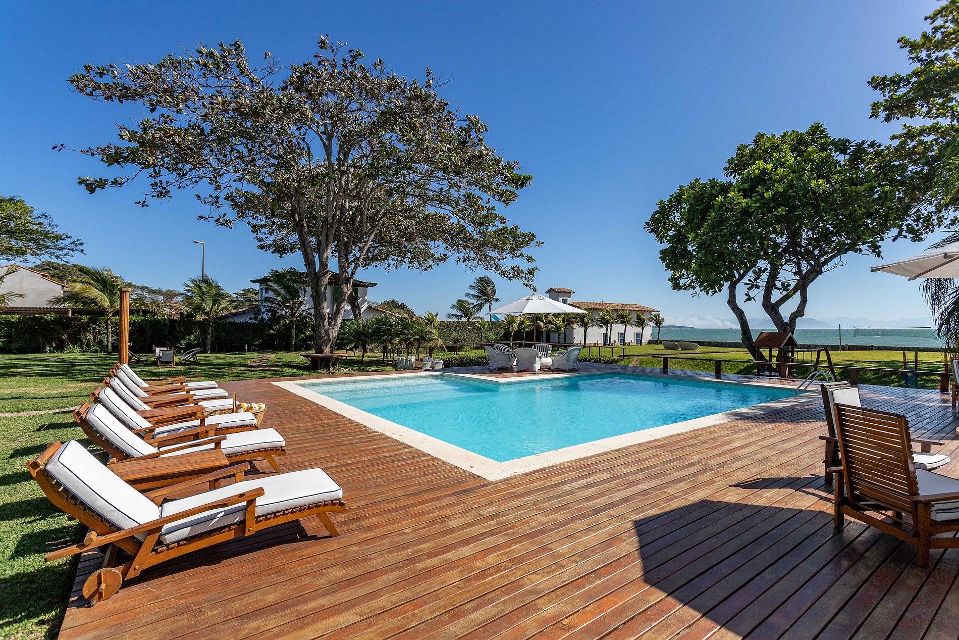 Face à la mer, sur la plage de Manguinhos à Búzios, cette magnifique maison de plage, impeccable dans les moindres détails, fera en sorte que ses hôtes se sentent confortables et accueillis. Elle dispose d'une maison principale et d'une charmante annexe. Idéale pour réunir la famille et profiter de moments de détente. Elle dispose d'un beau jardin, d'une piscine, d'un barbecue, d'un sauna et d'un four à pizza. MAISON AVEC 10 SUITES ET 2 CHAMBRES.