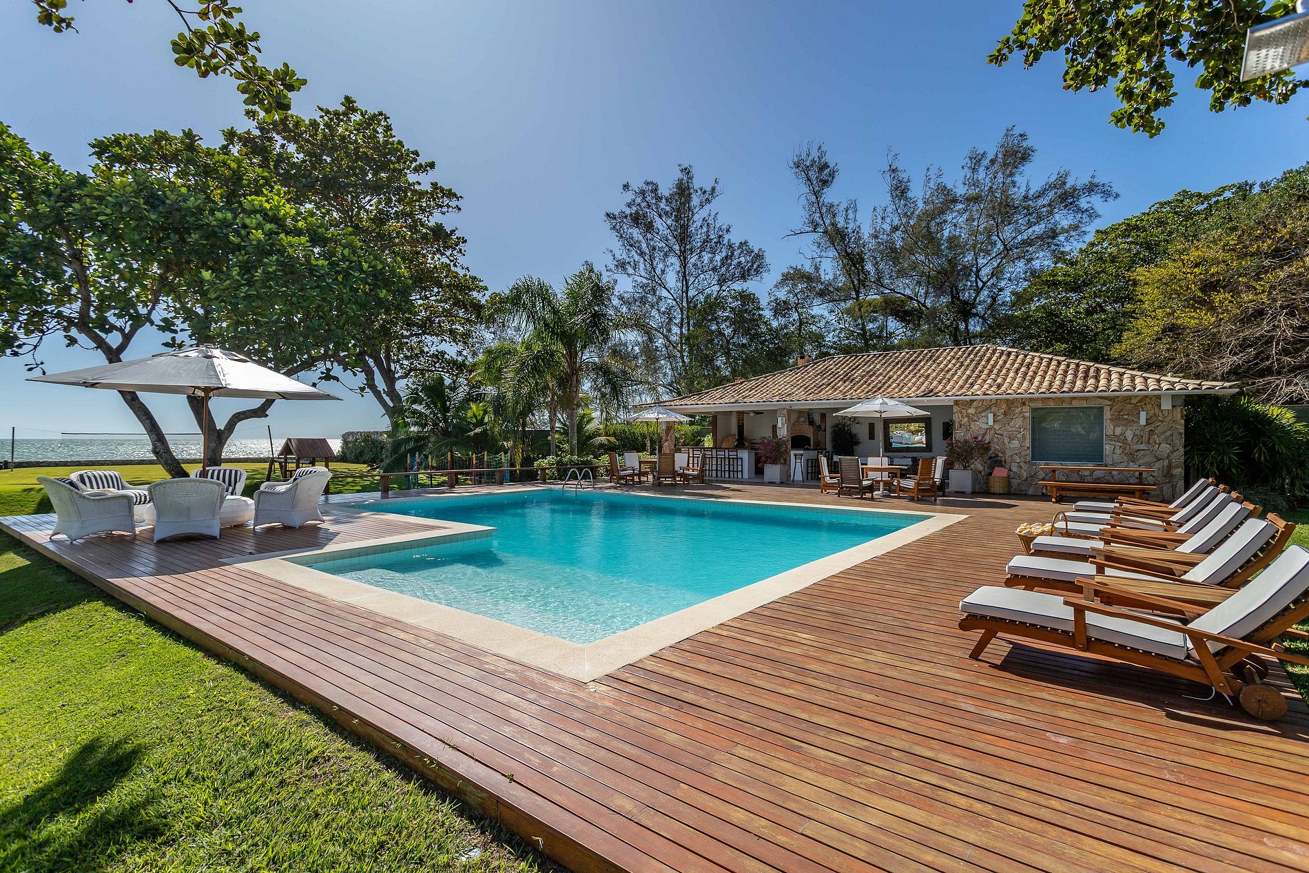 Face à la mer, sur la plage de Manguinhos à Búzios, cette magnifique maison de plage, impeccable dans les moindres détails, fera en sorte que ses hôtes se sentent confortables et accueillis. Elle dispose d'une maison principale et d'une charmante annexe. Idéale pour réunir la famille et profiter de moments de détente. Elle dispose d'un beau jardin, d'une piscine, d'un barbecue, d'un sauna et d'un four à pizza. MAISON AVEC 10 SUITES ET 2 CHAMBRES.