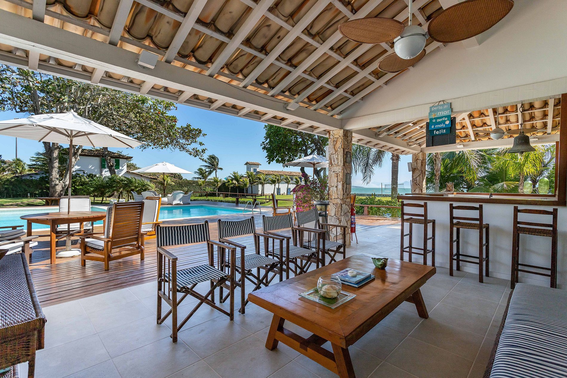 Face à la mer, sur la plage de Manguinhos à Búzios, cette magnifique maison de plage, impeccable dans les moindres détails, fera en sorte que ses hôtes se sentent confortables et accueillis. Elle dispose d'une maison principale et d'une charmante annexe. Idéale pour réunir la famille et profiter de moments de détente. Elle dispose d'un beau jardin, d'une piscine, d'un barbecue, d'un sauna et d'un four à pizza. MAISON AVEC 10 SUITES ET 2 CHAMBRES.