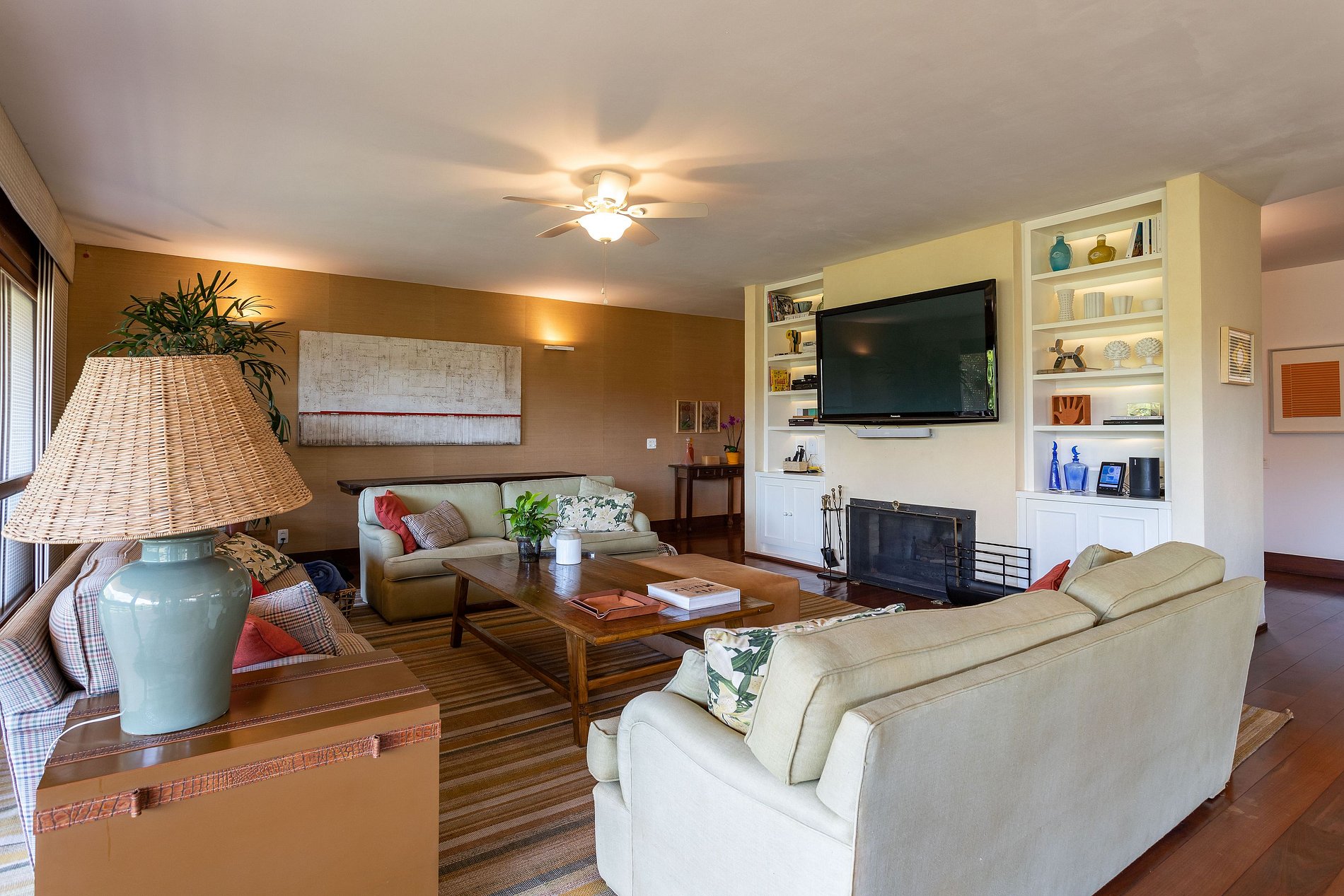 A casa reúne tudo o que você precisa para seu entretenimento: quadra de vôlei de grama, sala de jogos integrada a salas de TV com projetor de cinema/home theater, mesa de ping-pong e sinuca; além de academia, sauna a vapor, máquina de gelo e uma adega para seus vinhos nas noites mais fresquinhas.