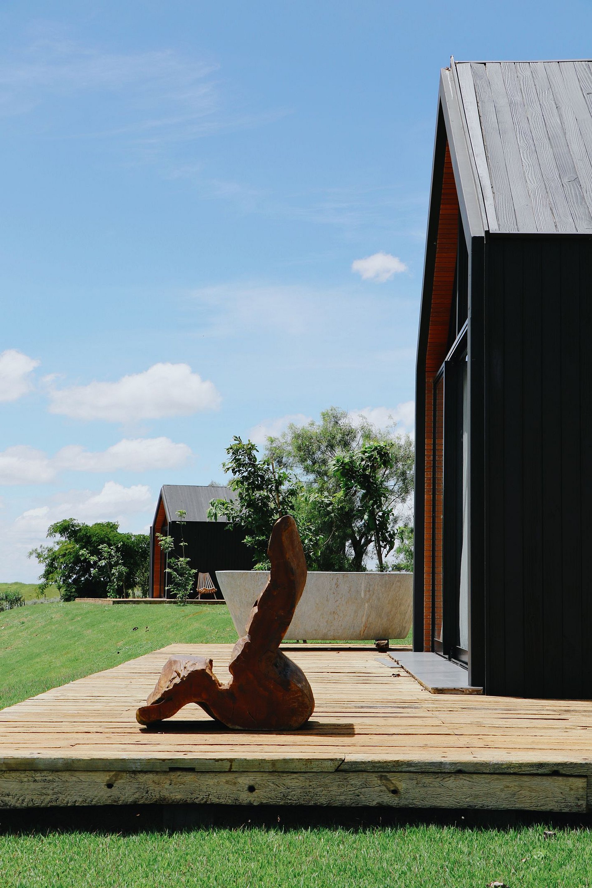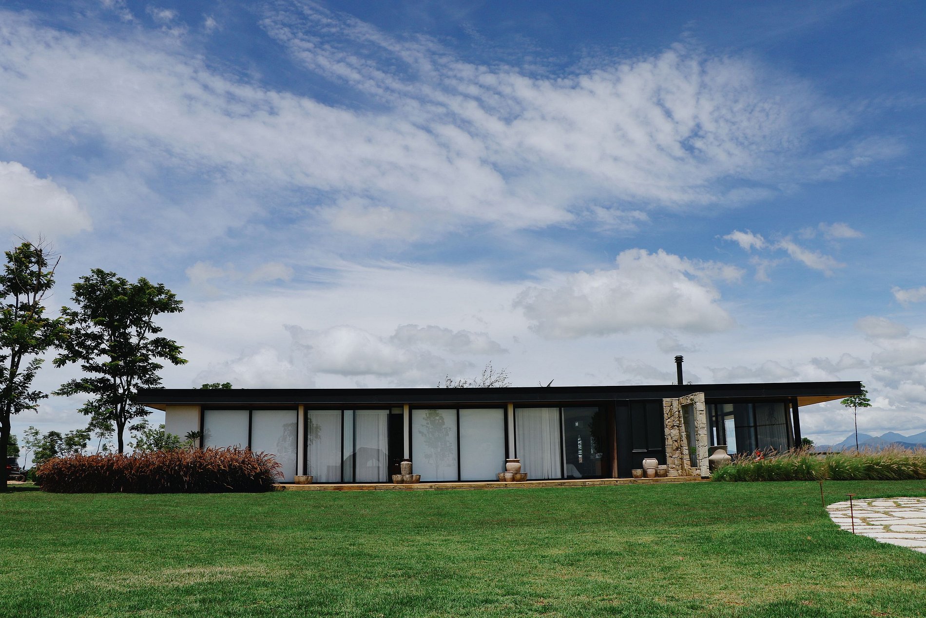 O projeto com assinaturas de Duda Porto Arquitetura e design de interiores da Hana Lener, destaca-se pela estrutura da casa e as cabanas em pedra, madeira e toda rodeada de vidro, para que o céu azul e toda beleza que a cerca seja incorporada aos ambientes. A sustentabilidade também está presente com a utilização de placas solares para captação de energia limpa.